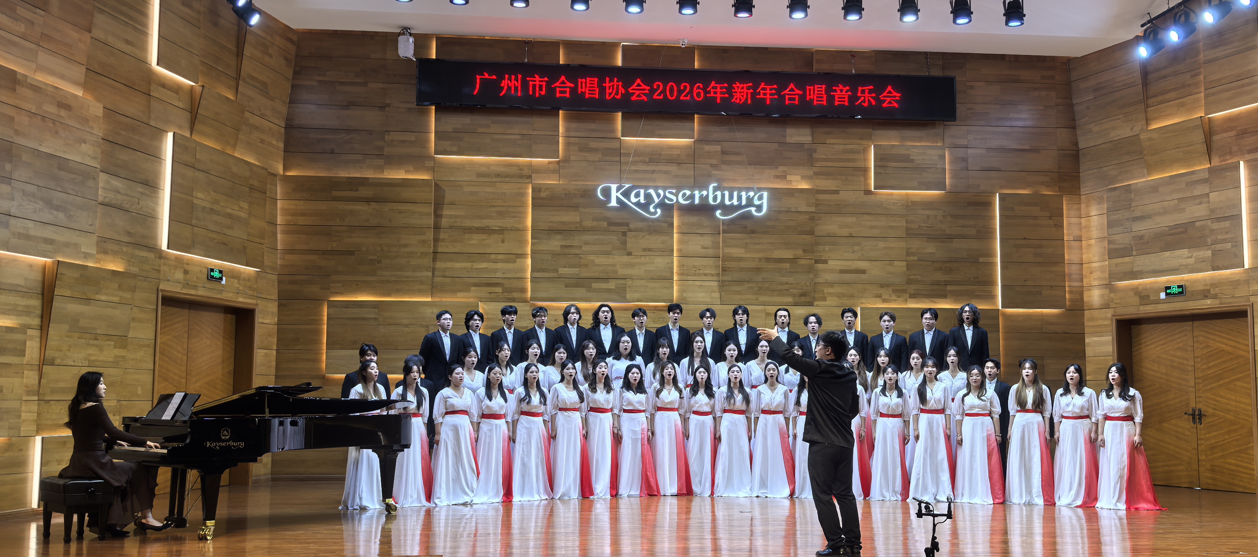 1月3日下午15:00,由广州市文学艺术界联合会指导,广州市合唱协会、广州珠江钢琴集团股份有限公司主办的“2026年新年合唱音乐会”在广州珠江钢琴集团恺撒堡音乐厅圆满落幕。我院合唱团受邀参加演出,与全市多支优秀合唱团同台献艺,充分展现出我院音乐教育的扎实功底与积极向上的精神风貌。