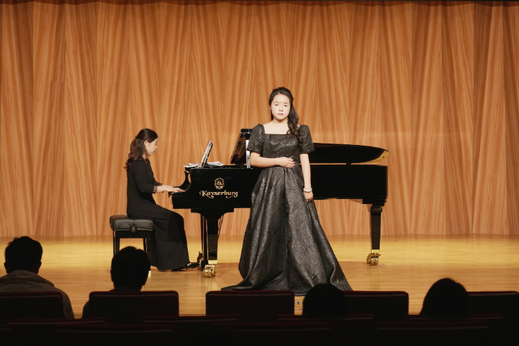 琴音悠扬,独唱之声激昂,尽情彰显学子的音乐才华。《放风筝》旋律灵动跳跃,钢琴声声似筝线颤动,勾勒出春日里放风筝的鲜活画面;歌者用独特的嗓音演绎《岁月悠悠》,高低起伏的歌唱形式唱出时光流逝的怅惘与生命沉淀的温厚。