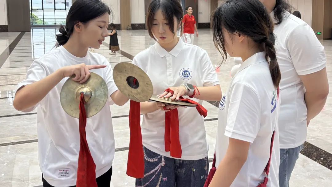 来自潮州市本地的锣鼓艺人向同学们讲解了潮州音乐“轻打细奏”的演奏风格以及锣鼓配合的音乐规制,实践队成员也现场尝试使用用锣、小钹、大钹、堂鼓等传统打击乐器等传统打击乐器,在互动与聆听中深刻体会潮韵魅力。