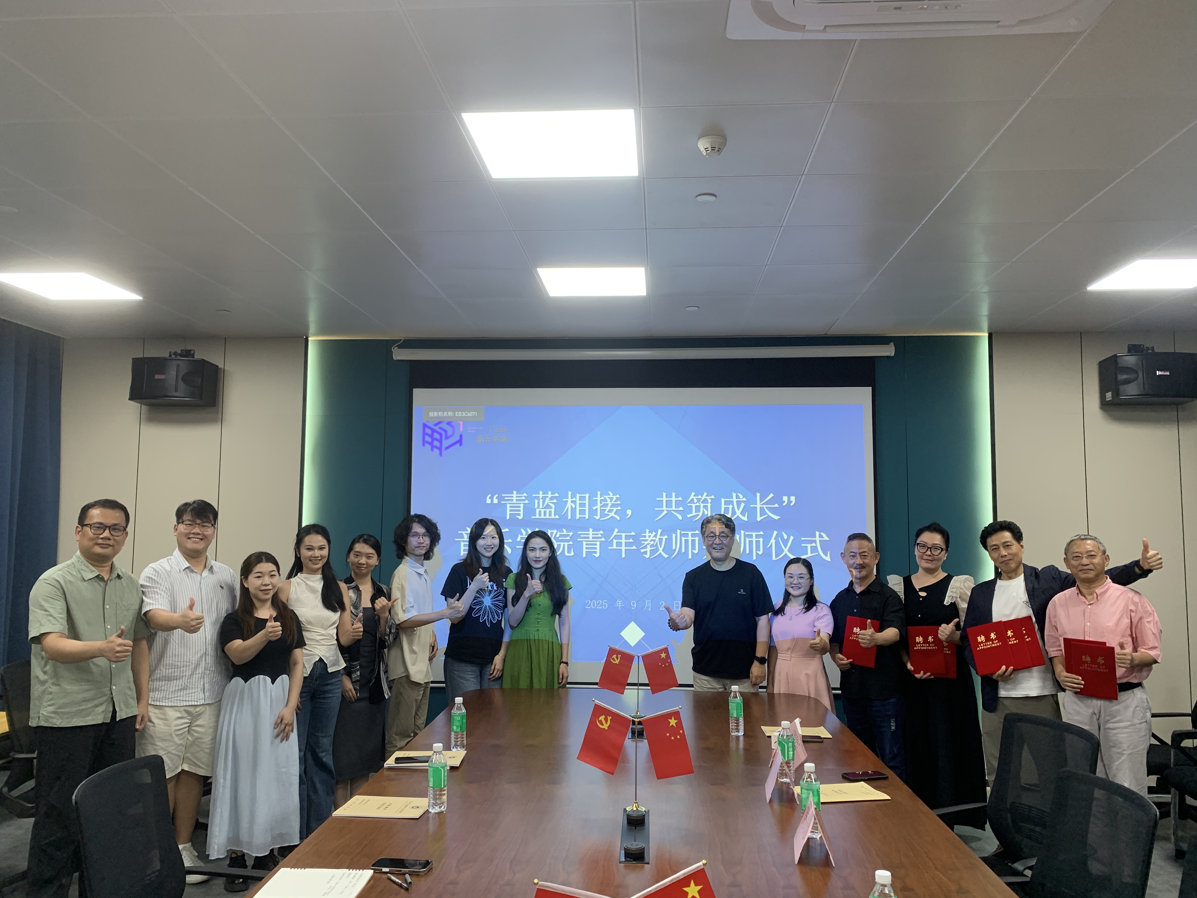 2025 年 9 月 3 日 17:00,“青蓝相接,共筑成长” 音乐学院青年教师拜师仪式于院会议室 J4-208 隆重举行。