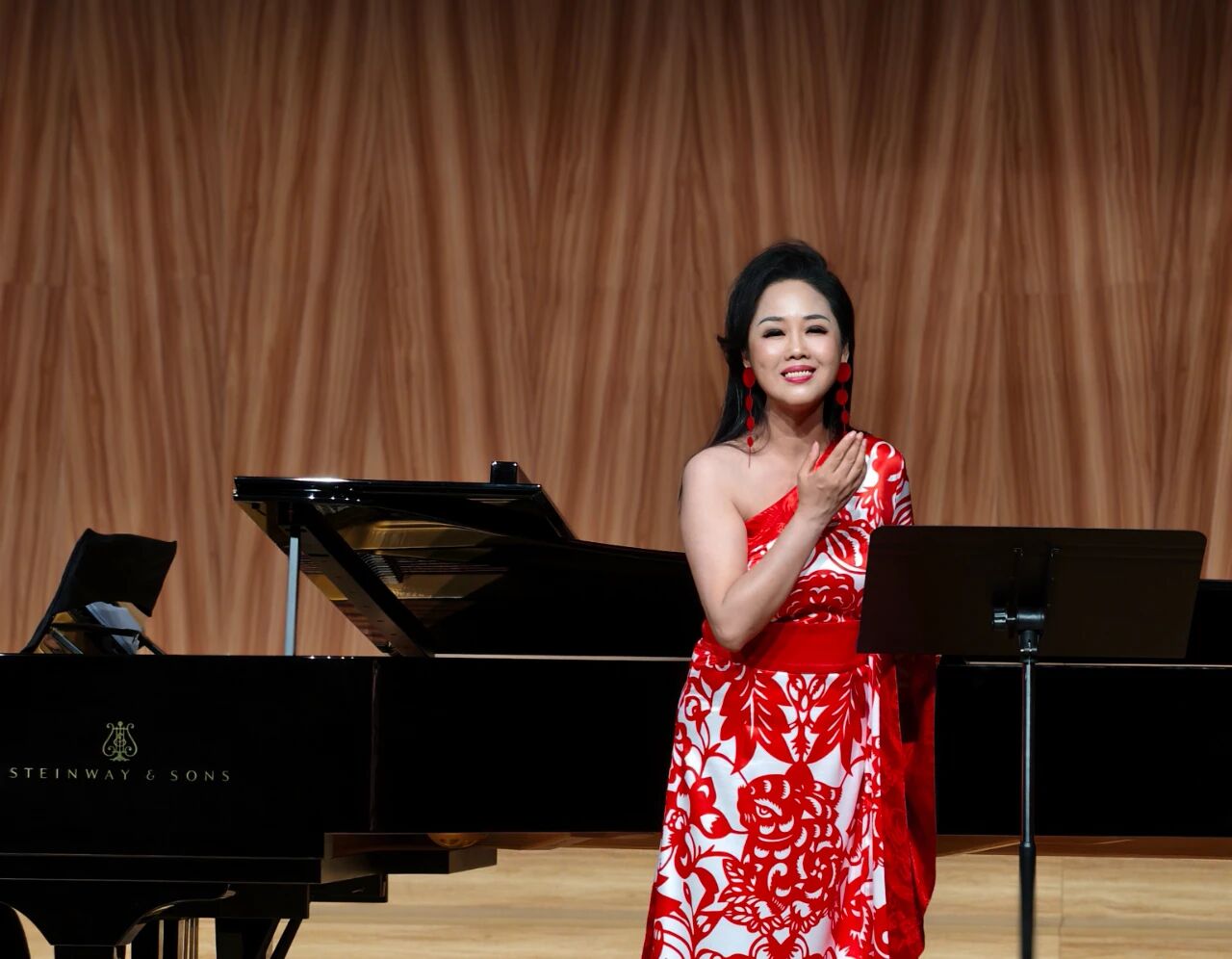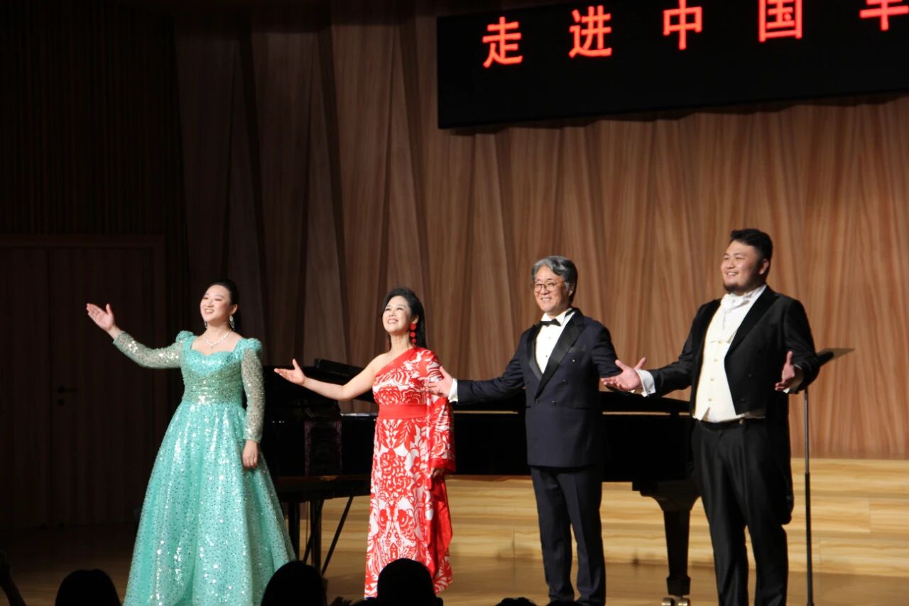 而在音乐会临近收尾时,五位演出者共同登台,深情演绎陆在易先生的经典作品《我爱这土地》,瞬间将整场音乐会的氛围推向最高潮。他们以饱含深情的嗓音,将对祖国大地的眷恋与赤诚娓娓道来,醇厚的歌声与灵动的钢琴旋律完美交融,每一个音符都直击人心,让在场观众深刻感受到作品中蕴含的深沉家国情怀,台下掌声与共鸣久久不息。这既是对我国早期音乐文化的梳理与致敬,也是对高校“以美育人、以文化人”理念的深刻践行。