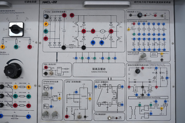 电力电子与电机拖动实验室位于广州应用科技学院肇庆校区第一实验楼304室,总占地面积200m2,实验室配备10个标准化实验台,核心设备涵盖可调电阻箱、直流电机电枢电源、直流电机励磁电源、转矩转速测量及加载实验箱、PWM脉宽调制变换器、FBA电流反馈模块、SPWM波形发生器等,设备性能稳定、操作便捷,可实现直流电机、变压器、异步电机、同步电机、电机机械特性测定、电力电子技术、电力电子调速等多个大模块的实验功能,涵盖各类电机特性测试、电路调试、调速控制等操作,适配不同实验场景的参数调节与数据采集需求,能同时容纳50人次进行实验,一学期使用效率达800余人次。