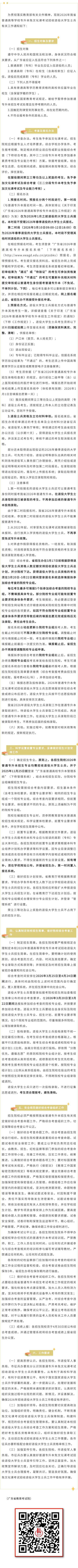 关于做好广东省2026年普通高等学校专升本免文化课考试招收退役大学生士兵工作的通知