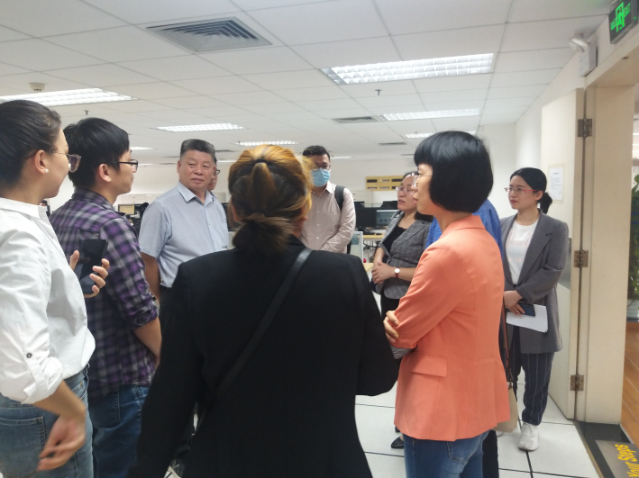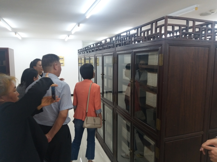 在广东外语外贸大学图书馆,孔晓明馆长介绍了该校图书馆的概况、图书采购、文献资料收藏、图书借阅流程、图书数字管理系统、房间设置以及图书馆工作人员的培训方式等方面的情况,我校馆长肖飞、黄亮处长等人分别就图书工作的场地建设、结构布局、功能拓展、信息化管理、特色活动等内容进行了深入地探讨和交流。