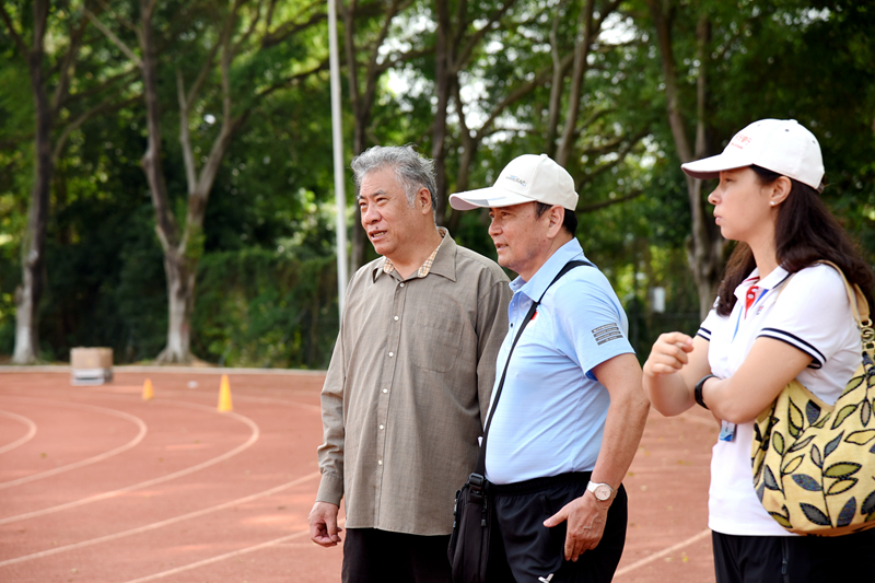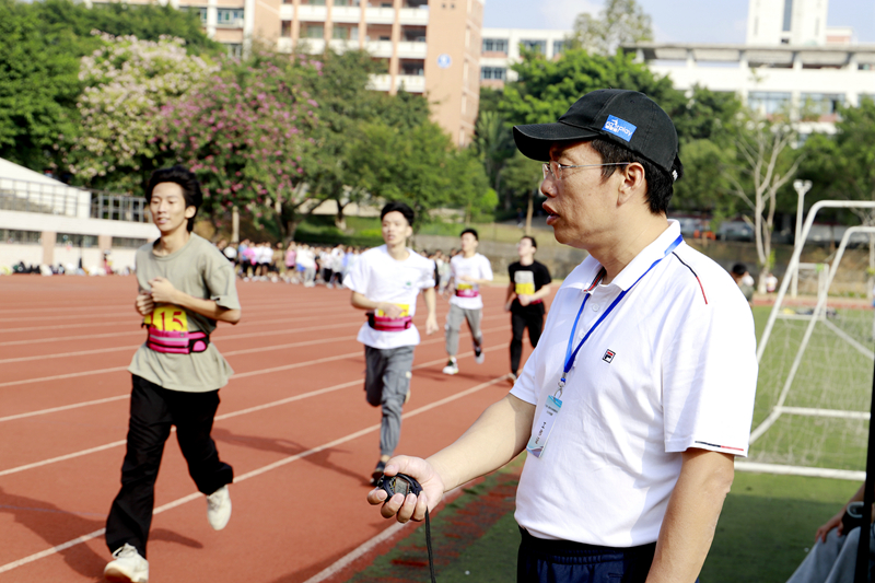 11月17日上午,由广东省教育厅组织开展的广州大学松田学院学生体质健康抽测工作,在我校足球场举行,480名学生接受现场测试。我校庞永师校长(左一)在社会体育系主任张军(中)的陪同下,来到体质健康抽测现场,代表学校欢迎来校开展测试工作的教育厅组织的专家组和工作人员,慰问参与现场工作的志愿者和裁判员,关心了解我校抽测学生的体质健康情况。