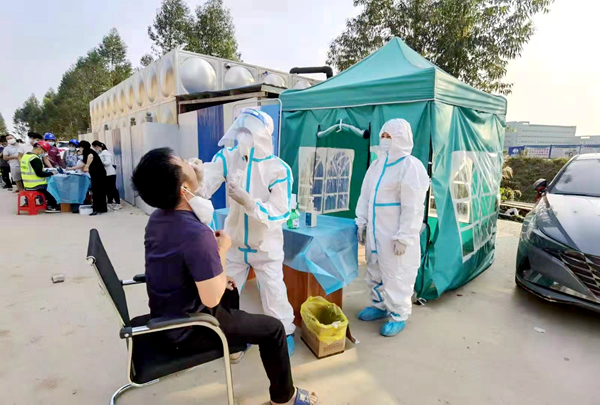 我校肇庆校区在新春复工建设之际,同步做好疫情防控工作,组织全体复工施工人员在现场进行核酸检测,确保工程复工后疫情防控全覆盖、无死角、无盲区。
