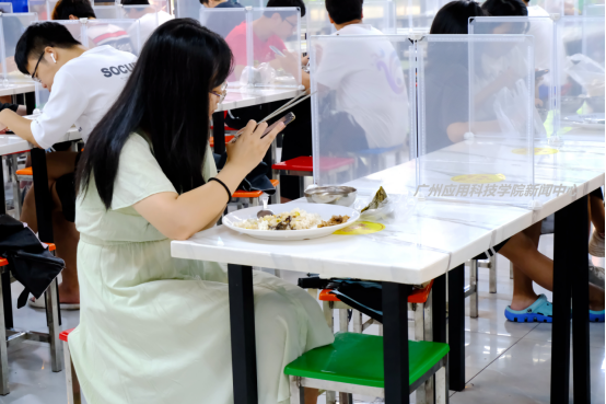 6月14日,端午节中午,广应科广州校区饭堂,为师生们提供了各式粽子,作为应节食品免费供应。在饭堂堂食,同学们可品尝饭堂推出的鲜肉粽;因为疫情防控期间的错峰安排,不少同学也在免费领取端午香粽打包回各自宿舍。
