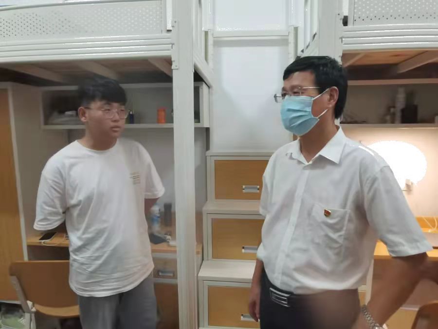 校领导们代表学校向全体新生表达了亲切的问候,认真查看了新生们的宿舍入住情况,并就即将开始的大学生活和同学们进行了亲切的交流。同时鼓励新生以积极的心态尽快适应大学校园生活,提醒新生要注意宿舍用电、防诈骗、人身财物安全等问题,叮嘱新生要做好疫情防控,要将疫情防控工作常态化,坚持健康打卡,日常注意寝室与个人卫生,有特殊情况及时向辅导员或学院反映。