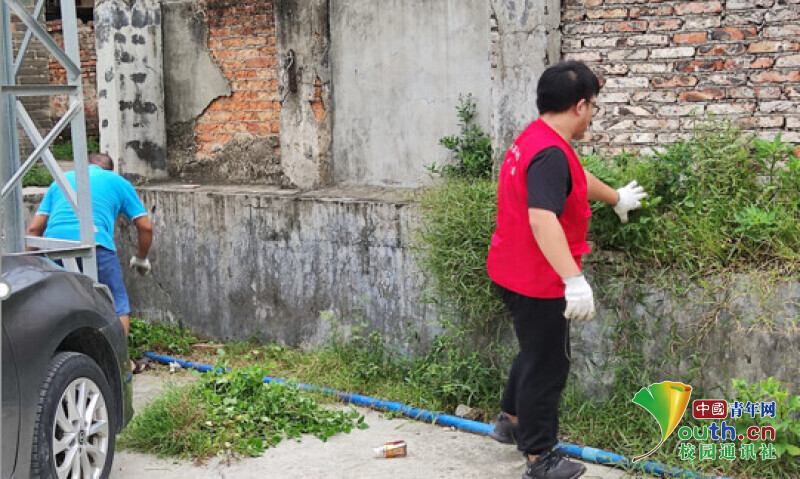 图为实践团成员胡启裕参加乡村环境整治活动。中国青年网通讯员胡启裕摄