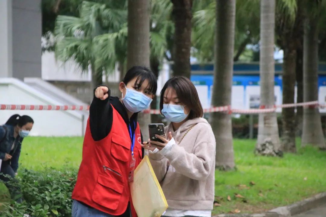 10月23日,2021年全国成人高考招生考试正式开考。3000多名考生在广州应用科技学院(广州校区)考点参加考试。在疫情防控常态化的环境下,我校考务人员、保卫处校卫队员、校团委青年志愿者协会积极投入疫情防控工作,为考生考试保驾护航。考生们进入校门前需佩戴口罩并保持一定间隔,按照秩序排队逐一检测体温,以及提供考前48小时核酸阴性证明。志愿者们在各自的岗位上为考生们指引方位,确保考生准确找到自己的考场。