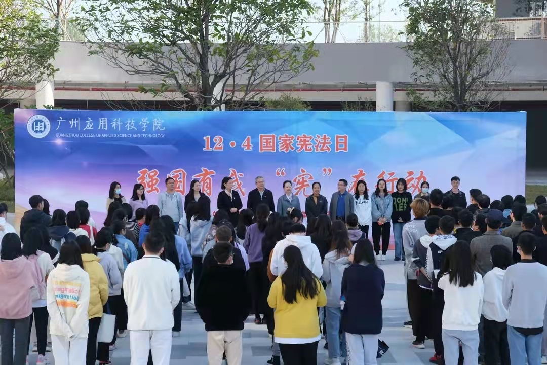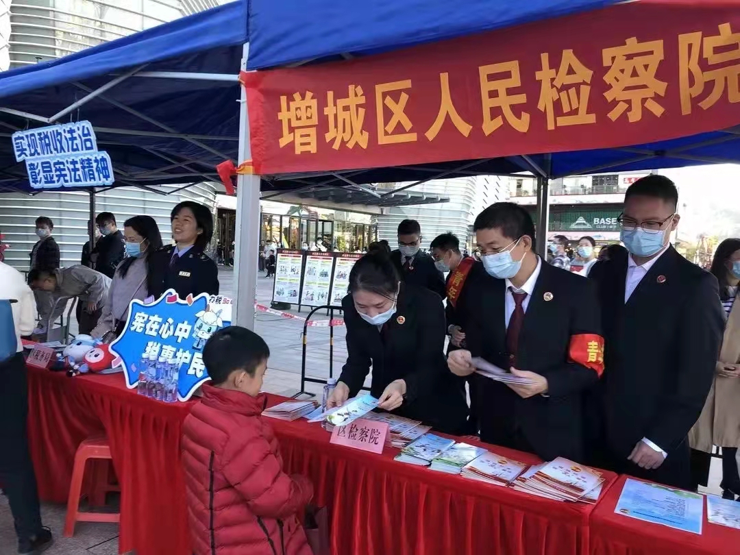 12月4日,为弘扬宪法精神,维护宪法权威,进一步提高群众宪法意识,营造浓厚的法治文化氛围,广州市增城区检察院与区有关单位在万达广场联合举办以“习近平法治思想为指引 坚定不移走中国特色社会主义法治道路”为主题的宪法宣传日活动。我校法政学院师生代表参与了此次普法活动。