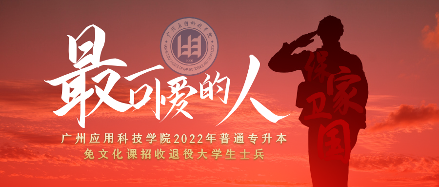 为贯彻落实《退役军人事务部等七部门关于全面做好退役士兵教育培训工作的指导意见》(退役军人部发〔2021〕53号)、《教育部办公厅关于做好2022年普通高等学校普通专升本考试招生工作的通知》(教学厅〔2021〕8号)、《广东省2022年普通高等学校普通专升本招生工作规定》(粤招办〔2021〕33号)精神,从2022年起,高职(专科)毕业生及在校生(含高校新生)应征入伍,退役后完成高职(专科)学业的,可申请参加退役大学生士兵免文化课考试普通专升本招生。根据文件精神,我校制定了2022年普通专升本免文化课招收退役大学生士兵招生简章。