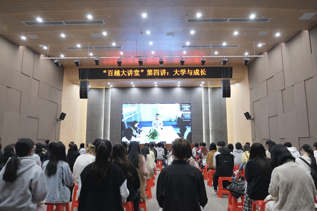4月19日下午,我校“百越大讲堂”第四讲如期开讲。唯品会华南运营中心及唯品会全国海淘运营总部负责人、唯品会仓储运作经理、肇庆市人大代表、“全国工人先锋号”称号的中共唯品会(肇庆)电子商务有限公司委员会第三党支部书记李盼为主讲嘉宾。讲座采取线上直播的形式,主会场设在行政中心一楼会议厅,分会场设在外国语学院;120多名师生聆听讲座。讲座由两名学生用中、英双语主持,副校长刘志新学术主持。