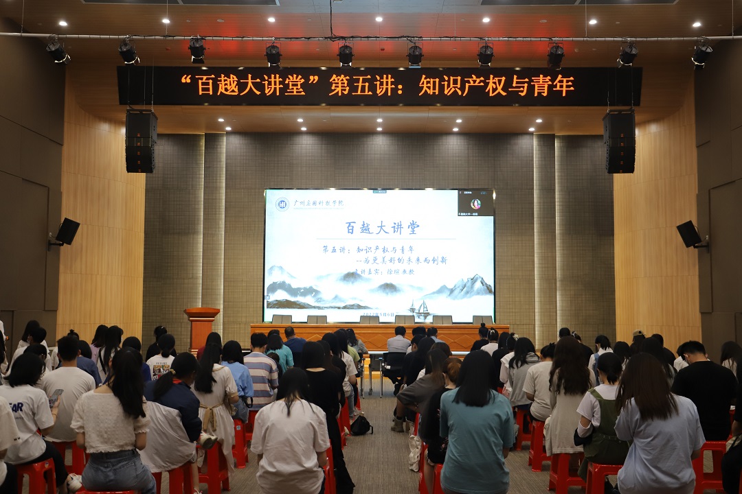 5月6日下午,“百越大讲堂”第五讲在行政中心一楼会议厅如期开讲。国家社科基金重大项目首席专家、中国知识产权法研究会副会长、广东省人民政府立法咨询专家、广东省知识产权法研究会常务副会长、广东省法学会法理学研究会副会长、暨南大学知识产权研究院院长、暨南大学法学院/知识产权学院副院长徐瑄教授以《知识产权与青年:为更美好的未来而创新》为题,为我校师生作专题讲座。讲座采取线上直播的形式,主会场在行政中心一楼会议厅,艺术与传媒学院、法政学院、外国语学院、经济与管理学院、计算机学院5个分会场,共660余名师生聆听讲座。讲座由两名学生用中、英双语主持,副校长刘志新学术主持。