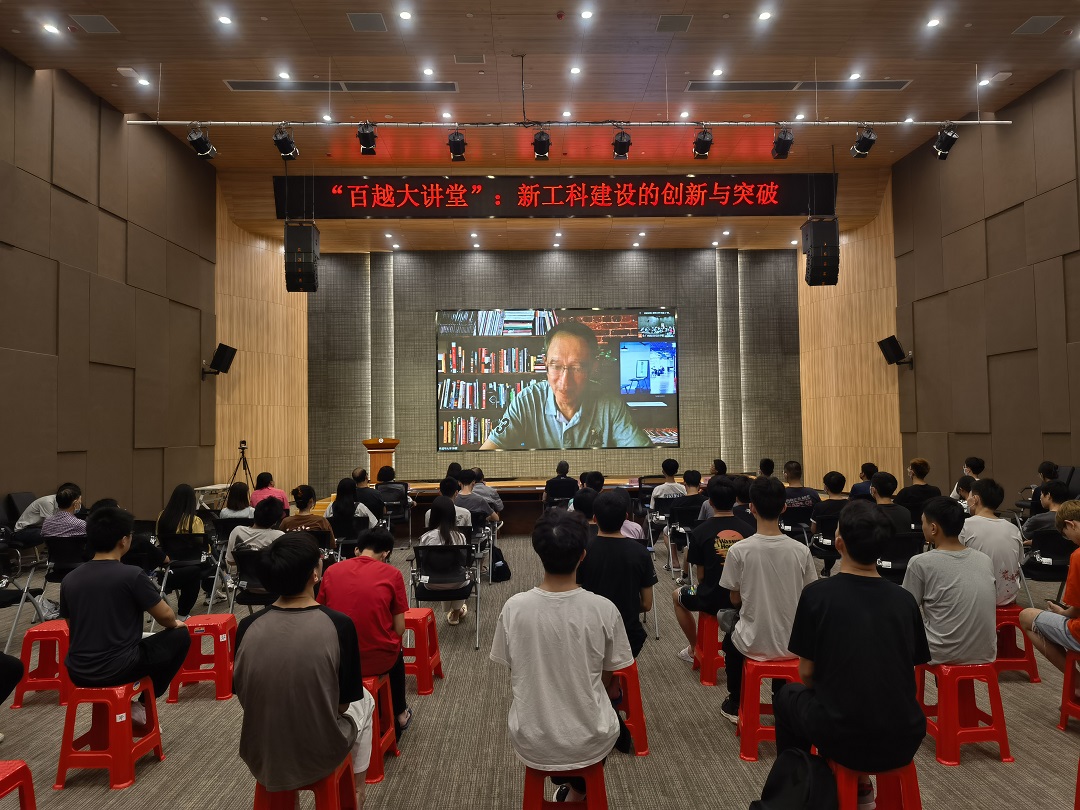 林健教授以《新工科建设的创新与突破》为题为我校师生作专题讲座。讲座采取线上直播的形式进行,主会场设在肇庆校区行政中心一楼会议厅,各二级学院设7个分会场。董事长、校长刘剑锋教授、校党委书记王永云等校领导,各二级学院、职能处室负责人,计算机学院、人工智能与电气工程学院、建筑学院教师及学生代表约580名师生聆听讲座。讲座由两名学生中、英双语主持,由教学顾问彭雷清教授担任学术主持。