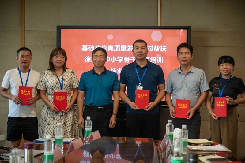 为贯彻落实省委、省政府关于推动基础教育高质量发展的工作要求,做好全口径全方位融入式帮扶粤东粤西粤北地区基础教育高质量发展工作,7月18日—21日,基础教育高质量发展结对帮扶——徐闻县中小学骨干教师培训在我校举行。来自湛江徐闻县下桥镇中心小学、西连镇瓜藤小学、西连镇石马小学、西连镇乐琴小学、西连镇龙腋小学、城北乡中心小学、角尾乡中心小学等学校的校长和教师代表参加了培训。我校副校长李江凌、校长助理欧仕身代表学校主持此次帮扶培训。