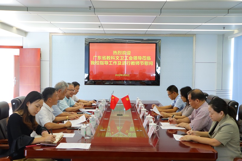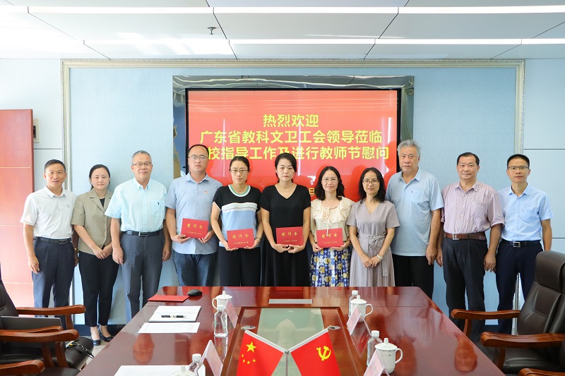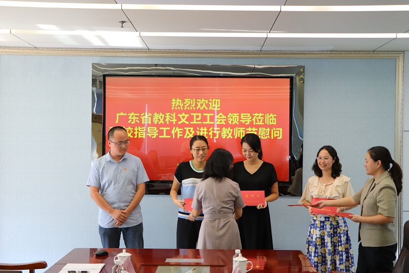 9月6日下午2点30分,广东省教科文卫工会主席谢岩梅等一行5人莅临我校指导工作,并对我校一线教师进行慰问。我校执行校长庞永师、党委书记王永云、校长助理欧仕身等校领导及4位受慰问的教师代表参加会议。