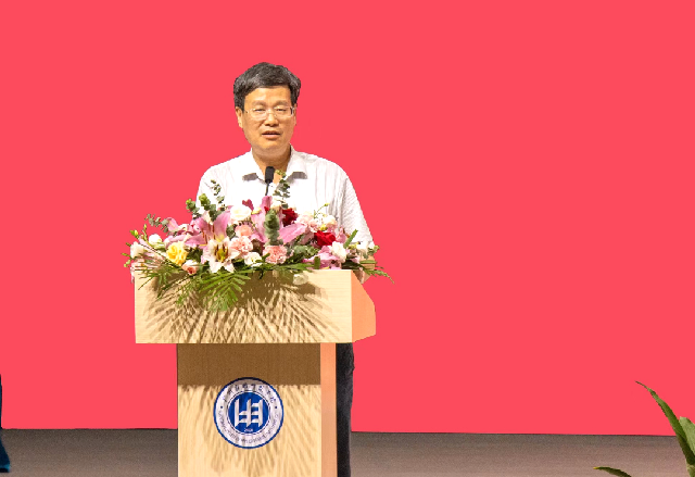 校长刘剑锋在庆祝大会上讲话,他首先代表全体党政领导班子向过去一年里在教育教学以及管理服务第一线辛勤工作、无私奉献的全体教职员工致以最诚挚的节日问候和最衷心的感谢,向新加入广应科大家庭的教职员工表示最热烈地欢迎和崇高的敬意。他表示,过去一年,学校坚持以“建设高水平应用型本科高校,培养高素质应用型本科人才”为战略主线,全面落实立德树人根本任务,深入开展教育教学与人才培养模式改革等各项工作,在全体教职员工的共同努力下,学校在发展规划、办学格局、学科建设、队伍建设、科研工作、学生培养及招生就业等方面都取得了明显进步。成绩的取得既是全校师生员工共同奋斗的结果,更是广大教职工辛勤汗水的结晶。他强调,职业特性决定了教师必须是道德高尚的人群,全体教师要坚守住人类灵魂工程师的职业操守,自觉恪守“学为人师,行为世范”的为师之道。要切实增强历史使命感、政治责任感和社会正义感,努力把社会主义核心价值观融入教书育人的全过程,做学术道德和良好风气的坚守者、维护者和弘扬者。他希望大家把握高校转型发展的良好机会,坚定理想信念,心怀“国之大者”,在全面建设社会主义现代化国家的新征程中勇担培育时代新人的历史使命,以积极向上的办学成绩喜迎党的二十大胜利召开。