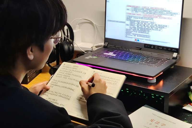字节跳跃,书页翻动。法学专业的同学在大一的第一学期。《宪法学》是专业必修课,期末将至,2022级同学上线晒课堂笔记,任课老师也在线“答疑”,一起在线“学习”,考试“卷”起来。