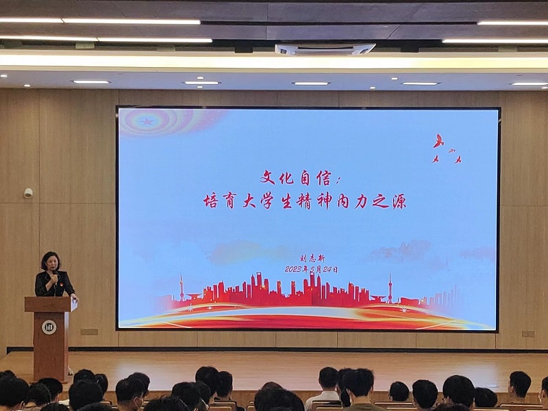 刘志新副校长以《文化自信:培育大学生精神内力之源》为主题,结合高校立德树人的根本任务和人才培养的新形势,讲解了习近平新时代中国特色社会主义思想关于科教兴国、人才强国和文化自信的重要论述,与会师生党员们认真学习,获益匪浅。党员同志们纷纷表示将结合实际学习和工作,认真学习贯彻习近平新时代中国特色社会主义思想,坚持文化自信,用实际行动为学校高质量发展贡献力量。