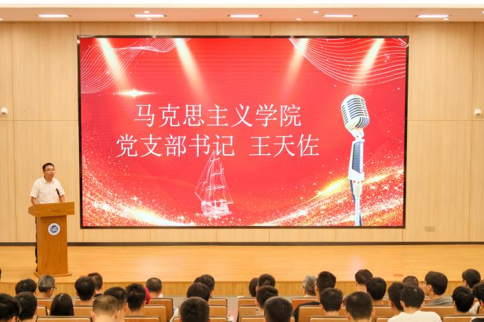 随后,马克思主义学院党支部书记王天佐为首期“大学生学习理论宣讲坛”作共建“一带一路”十周年成果主题宣讲。
