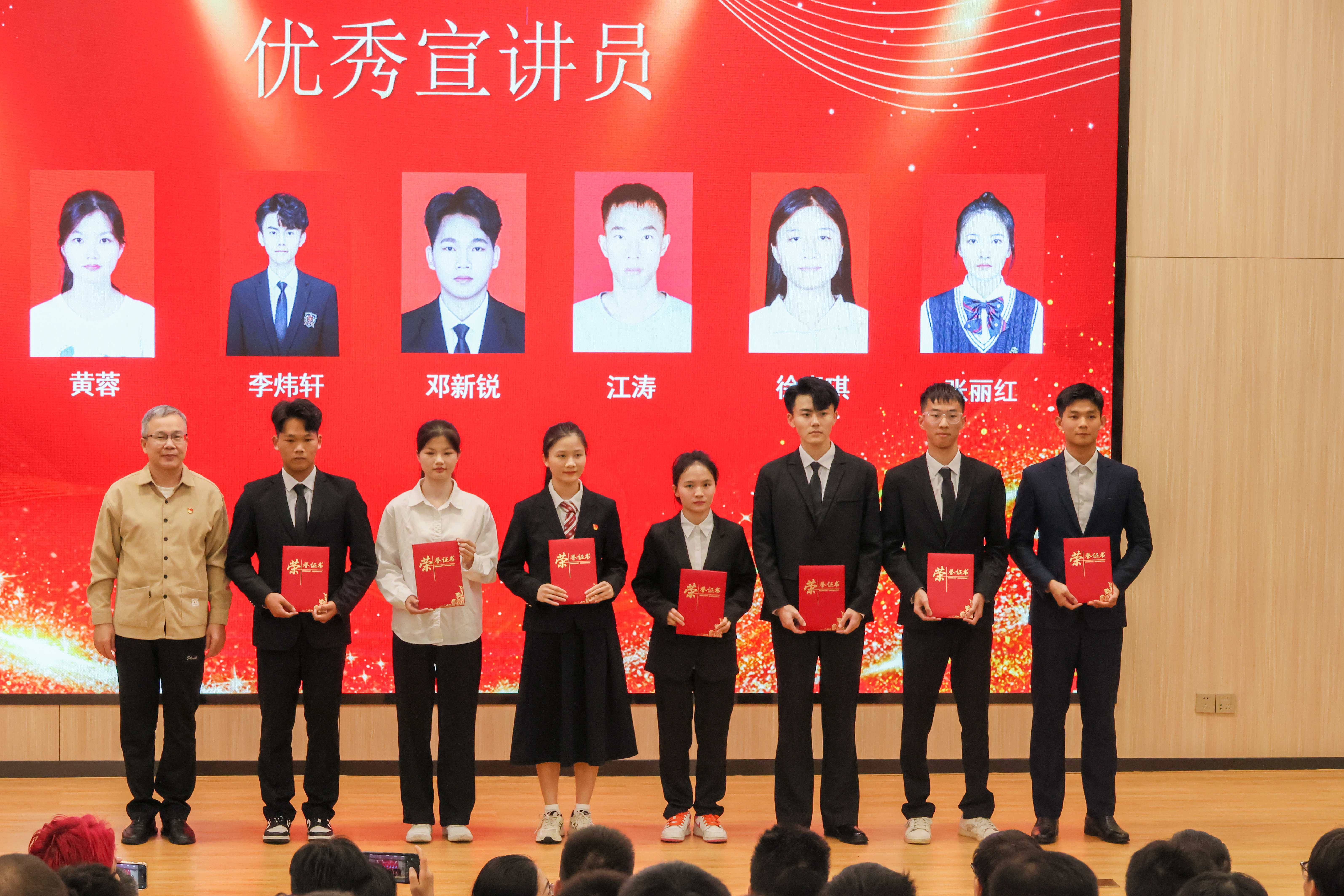 ▲党委书记王永云为优秀宣讲员颁发荣誉证书。