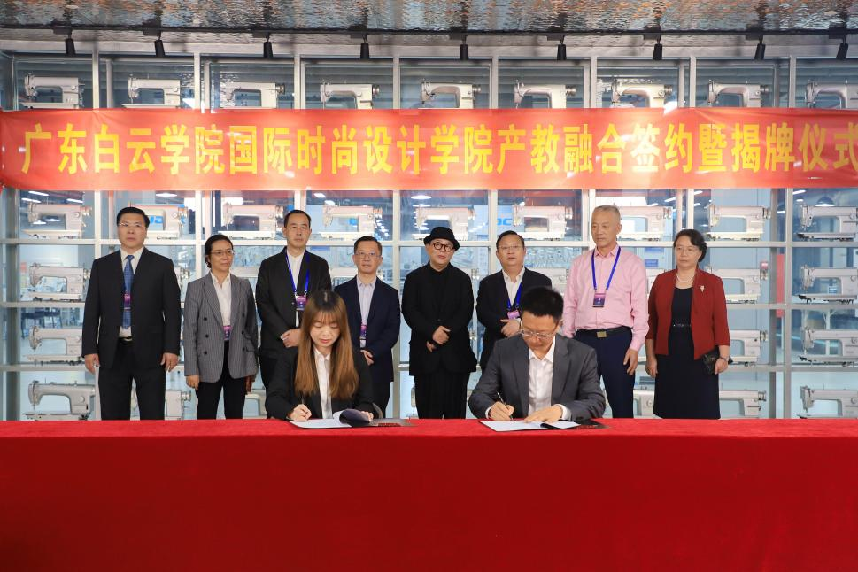 随后,与会嘉宾前往广东白云学院JIWENBO国际时尚设计学院参观产教融合成果展示,并共同参与SHEIN一体化服装人才培养基地、杰克科技股份有限公司、穗达服饰生产基地、广州金玺绸业、布络维科技(上海)有限公司、广州春晓科技公司、深圳市蝶讯网科技股份有限公司、中国纺织出版社的签约与揭牌仪式。