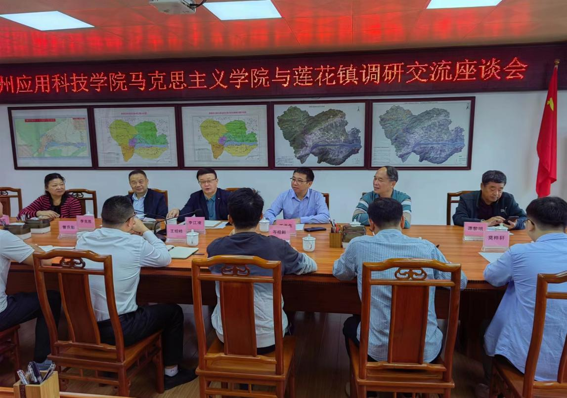 李江凌院长向对方介绍了广州应用科技学院的办学历史,学校在人才培养、科学研究、服务社会、传承文化等方面取得的成绩,以及马克思主义学院的人才培养、学科建设、教师资源等情况。李江凌院长还对与莲花镇进行合作与共建的具体方式和途径提出了建设性的建议。