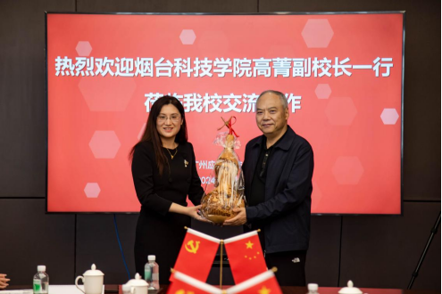 烟台科技学院副校长高菁表示,烟台科技学院与广应科历史渊源深厚,互为兄弟院校,她希望通过此次交流,能够汲取广应科在校区运营与管理、国际交流、产教融合等方面的宝贵经验,为烟台科技学院的扩建提供思路与参考。在交流过程中,高菁副校长一行还向我校赠送了学校文创纪念品“八仙葫芦”,以此表达对我校的诚挚友谊与美好祝愿。