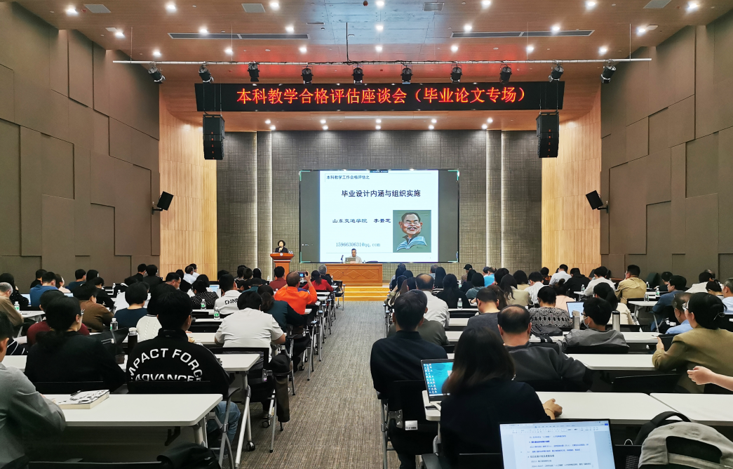 下午,本科教学合格评估(毕业论文专场)培训会议在行政楼一楼报告厅举行,教务处、教学质量监控与评估相关人员、校院两级教学督导、二级学院院长、主管教学副院长、系主任、教研室主任、教务秘书以及全体专任教师(线上)参加了会议,会议由教学质量监控与评估中心彭雷清主任主持。李景芝教授以《毕业设计内涵与组织实施》为题,从毕业设计(论文)与综合训练评估指标合格标准解读开始,详细讲述了制度及执行、教师与指导、选题及任务、开题与报告、中期及检查、论文与质量、答辩及成绩和归档之材料等八个方面的内容。李教授作为本科教学工作评估专家和工程教育认证专家,结合多年评估工作经历和具体案例,针对毕业设计(论文)工作中可能存在的问题进行了详细解读,会上各学院老师结合各专业论文选题特点,就如何更好做好毕业设计(论文)工作向李教授请教,李教授予以悉心解答,老师们获益匪浅。