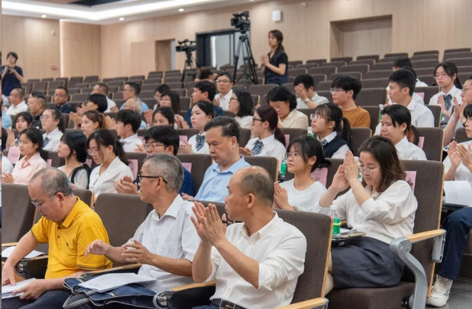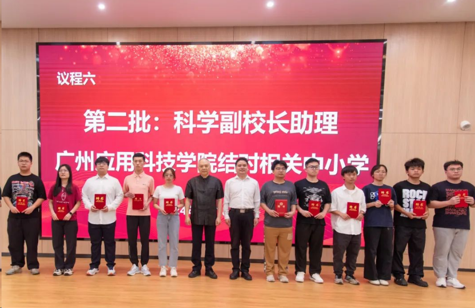 广州应用科技学院执行校长张光宇在仪式上讲话,首先代表学校向出席今天活动的各位领导表示热烈欢迎、向受聘的老师及同学们表示衷心祝贺。他表示,学校转设更名以来,认真学习贯彻习近平新时代中国特色社会主义思想,认真贯彻落实党的教育方针,坚持立德树人根本任务,牢记“为党育人、为国育才”的使命,努力把学校建设成为粤港澳大湾区特色鲜明的高水平应用型大学。“我们将迎来春季的最后一个节气——谷雨。雨生百谷,科学教育的普及犹如播种插秧、春播秋收。衷心希望科学副校长及助理们在今天播下的种子,将会在鼎湖区教育的春天里绽放美丽的花朵,茁壮成长为未来的国家栋梁。”张光宇执行校长借用谷雨节气的形象特征,强调要把服务高质量发展作为学校发展的重要任务,积极参与到助力“百县千镇万村高质量发展工程”的生动实践中,为培养新一代科技创新人才作出广应科应有的贡献,把建设教育强国、科技强国、人才强国三者有序结合,形成推动高质量发展的倍增效应。张光宇执行校长提出四点美好愿景:一是履职尽责,站在服务国家人才培养“百年大计”的思想高度明确责任;二是当好桥梁,把中小学和大学联动起来,埋下一份对科学的向往;三是播下种子,让孩子们在心中产生探索兴趣,激发求知欲望,培养创新精神;四是共同成长,在实践中强化参与教育强国建设的使命感和责任感。