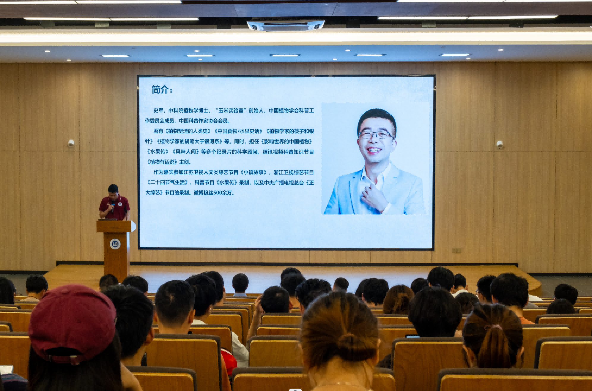史军博士围绕着“是我们改造了植物吗”这个问题,通过人类为什么有智齿、文明古国为什么多出现在温带和亚热带区域、青蒿素的作用、 汉字的形状为什么是瘦长形状、农作物的需求和季风气候等方面,详细介绍了植物对人类进化发展史起到的关键作用。他指出,人类的形态、食物、文字、贸易、社会组织结构其实都来自相关的植物,人类改变植物为我所用,而人类也被植物改变着;植物对人类的影响不仅仅体现在今天的衣食住用行,还有人类的未来,人类对植物的认识,也是对自己的认识,人类驯化了植物,植物却塑造了人类。希望同学们能够重新认识植物对人类文明的意义,感受到每一篇叶子背后悦动的生命魅力,加强对植物的认识和了解,学会运用认识与实践的辩证关系,不断探索人与自然的和谐共生之路。