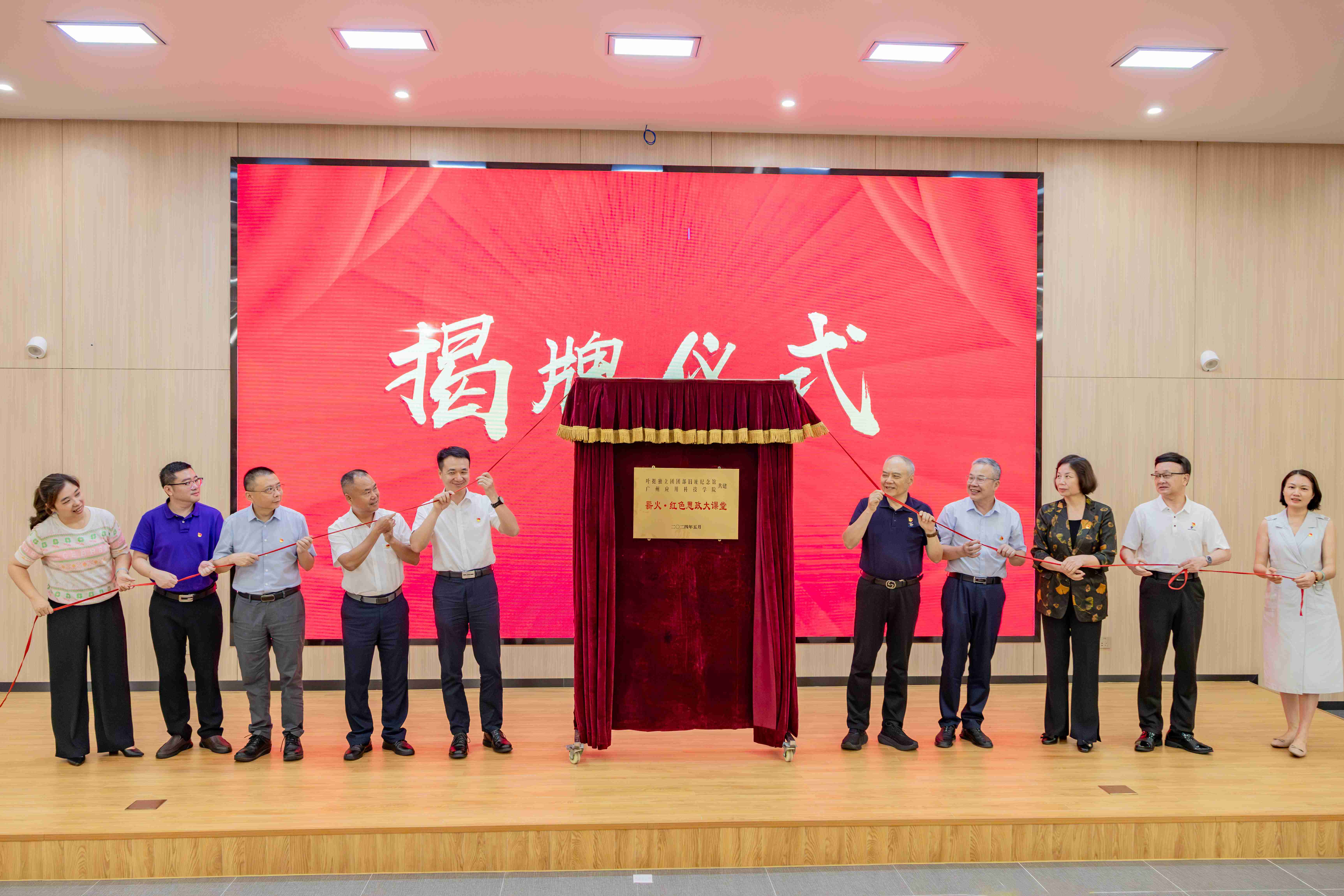 仪式上,肇庆市委宣传部副部长梁凌宇,叶挺独立团团部旧址纪念馆副馆长林剑清,宣教研究部主任刘芳,陈列保管部主任许玉华,广州应用科技学院党执行校长张光宇、党委书记王永云、常务副校长吴舸、副校长刘志新、党委宣传部部长李帆等领导共同为“薪火相传·红色思政大课堂”揭牌。馆校共建“红色思政大课堂”的揭牌,标志着广州应用科技学院开展思政教育又增添了新的载体,它必将成为革命传统教育的红色基地和理想信念教育的生动课堂,在学校思政课建设与党的创新理论武装同步推进,深入推动习近平新时代中国特色社会主义思想进教材进课堂进头脑,全力建设好“习近平新时代中国特色社会主义思想概论课”,完善以习近平新时代中国特色社会主义思想为核心内容的思政课课程群建设中,具有不可替代的特殊作用。