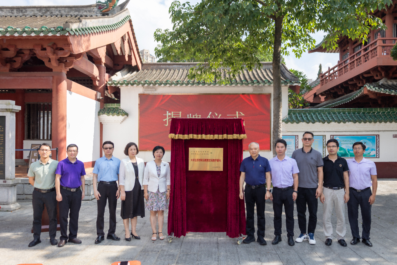 仪式上,我校执行校长张光宇与肇庆市包公文化博物馆副馆长徐文娟分别代表双方签署校馆共建协议,并向肇庆市包公文化博物馆副馆长徐文娟颁发聘书。肇庆市包公文化博物馆副馆长徐文娟、我校执行校长张光宇、纪委书记刘志新、校长助理吴明生等领导共同为“大学生思想政治教育实践教学基地”揭牌。