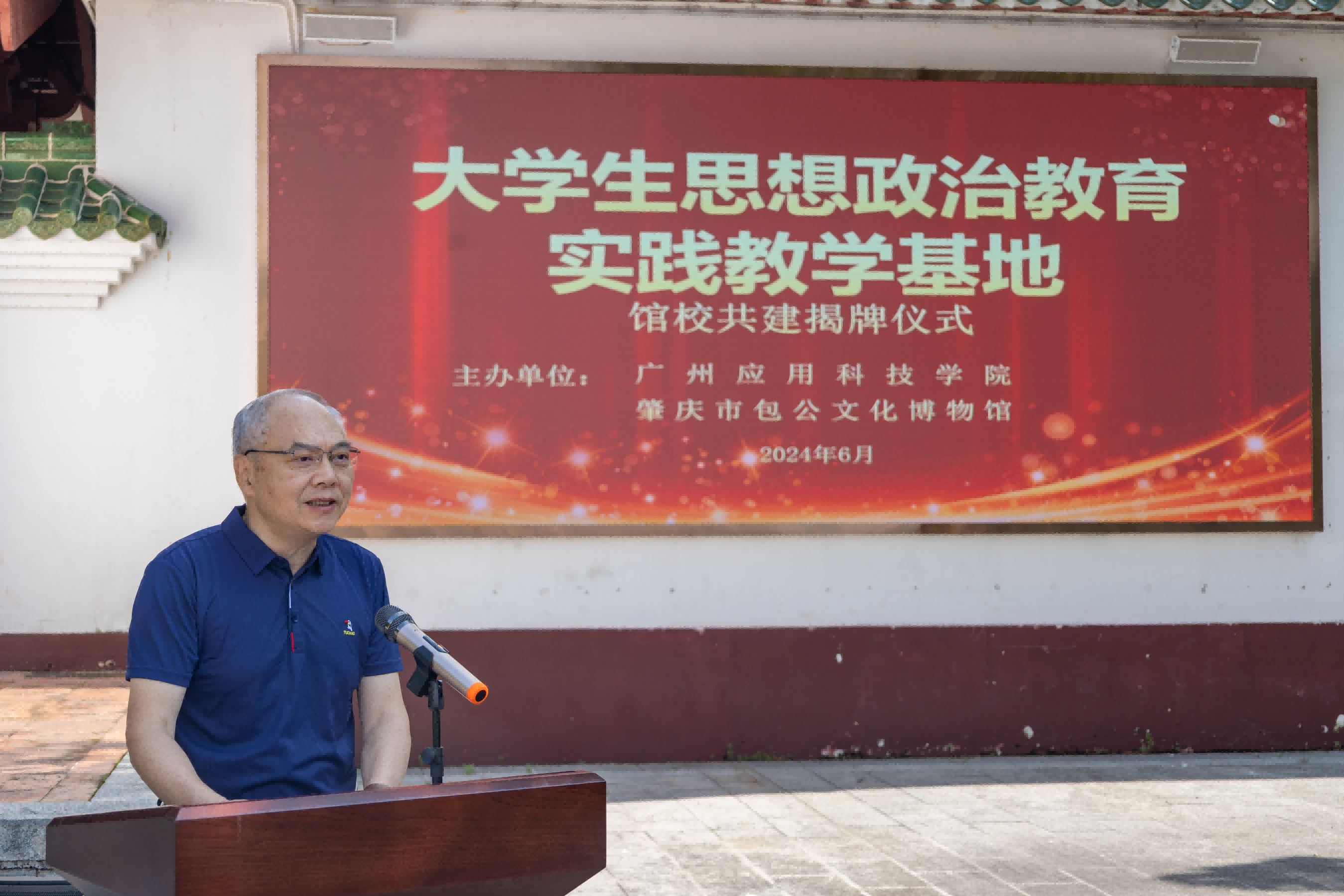 我校执行校长张光宇代表学校对校馆共建“大学生思想政治教育实践教学基地”表示热烈的祝贺,对肇庆市包公文化博物馆的指导与支持表示感谢。他指出,广应科将以此次馆校共建为契机,借助包公博物馆的资源优势,引导学生深入了解肇庆地方历史和中华优秀传统文化,从而进一步加强思政教育。同时,学校将借鉴博物馆在文化传承和教育推广方面的高贵经验,不断创新思政教育工作方法,培养更多具有社会责任感和创新精神的新时代人才。