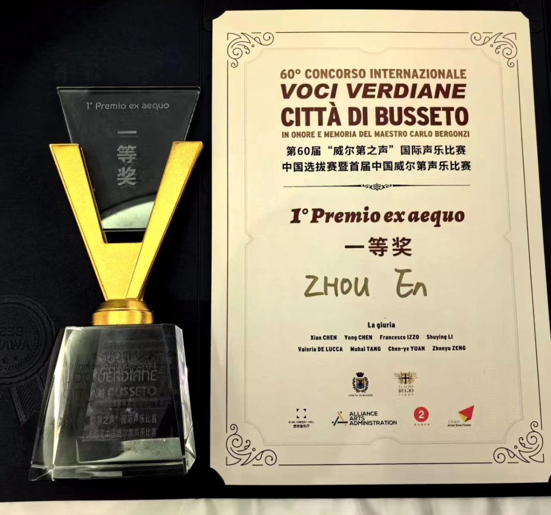 7月11日,第60届“威尔第之声国际声乐”国际声乐比赛中国选拔赛暨首届中国威尔第声乐比赛盛大举行。在这场高手如云的激烈角逐中,来自广州应用科技学院音乐学院的青年教师周恩一举夺得比赛最高荣誉——一等奖,并将在今年 2024年9月2日代表中国赴意大利参加全球总决赛。