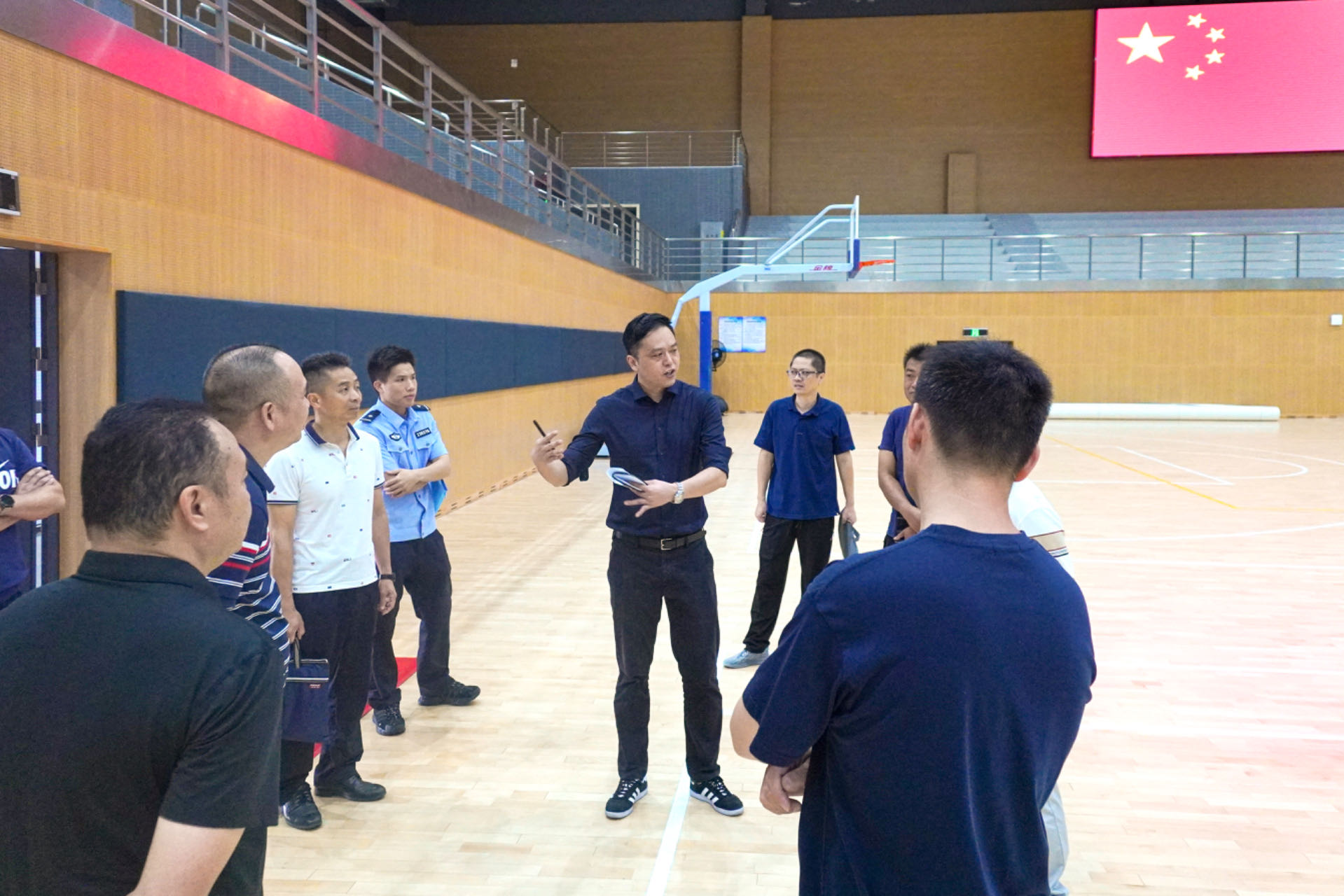 调研现场,市文广旅体局领导一行参观了我校体育馆、通过听取我校领导汇报、实地调研等方式,详细了解我校体育场馆配套设施分布位置、场地周边环境等情况,同时向我校体育场馆提出针对性建议,从基础消防设施检查、运动员休息区域、志愿者服务提供、场馆安全设备、赛事整体布局方案等方面,深入交流建设好承办赛事场馆的相关事宜,并就如何更好地满足第十五届全国运动会群众赛事活动的需求、提升赛事服务品质等问题进行了深入探讨。