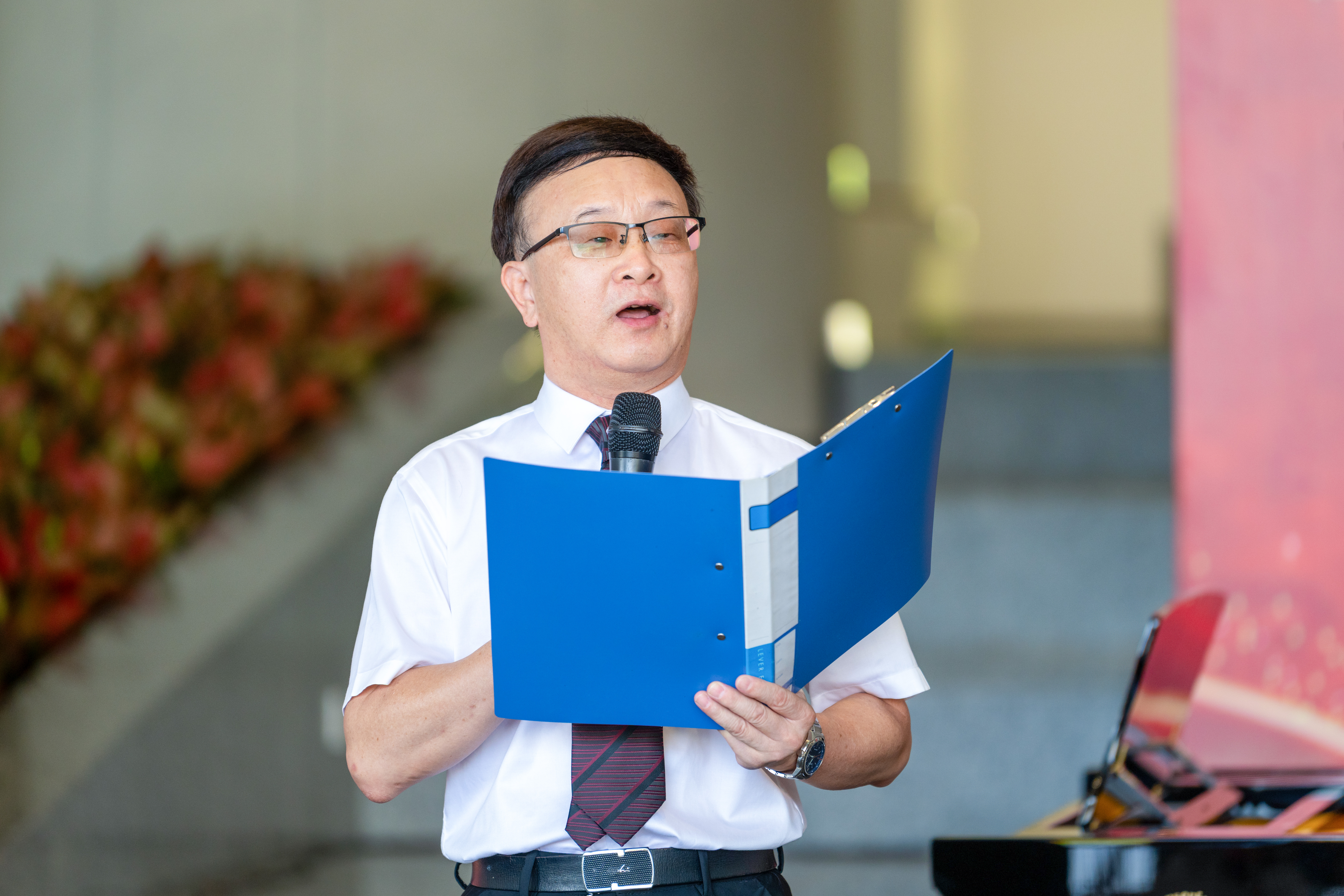 在“伟大的中国”篇章中,学校“鼎湖学者”获得者、马克思主义学院院长李江凌教授以深情的朗诵,带领大家回溯了中华民族的悠久历史和灿烂文化。随后,《黄河颂》和《滚滚长江东逝水》两首经典曲目,以激昂的旋律和磅礴的气势,展现了祖国的壮丽山河和民族的坚韧不拔。