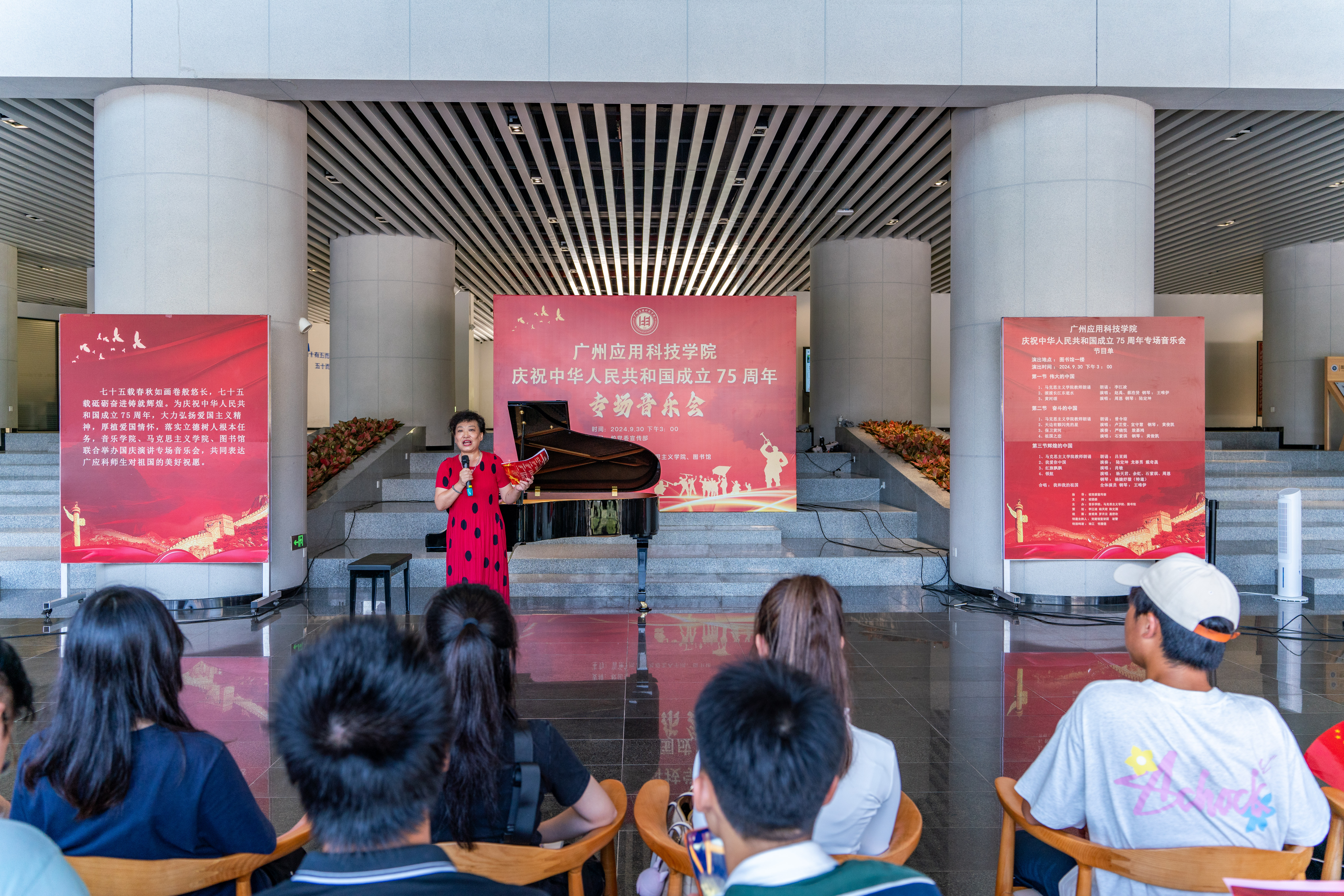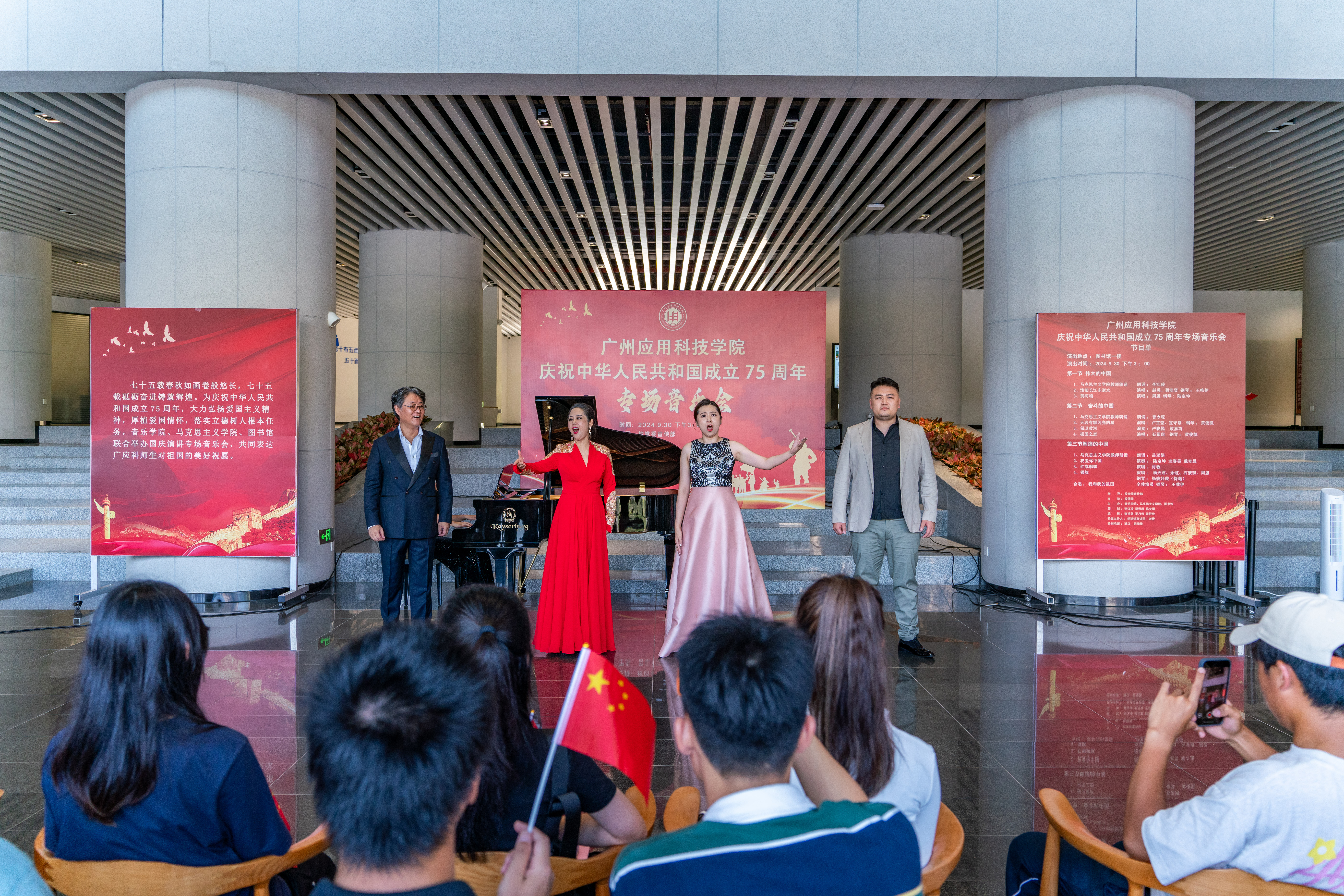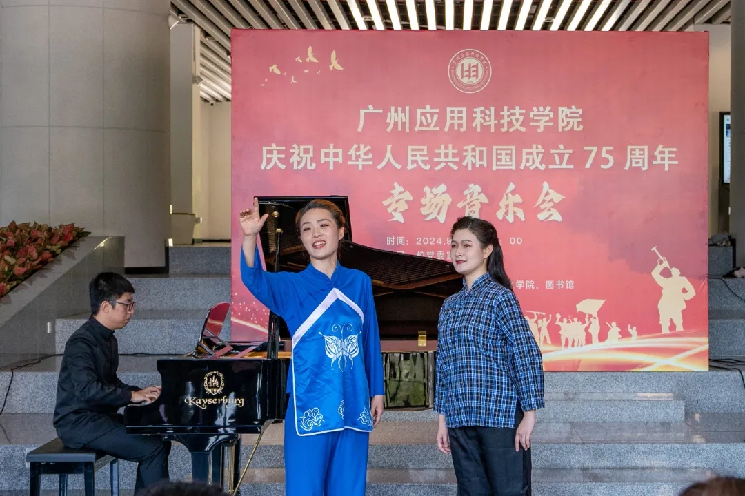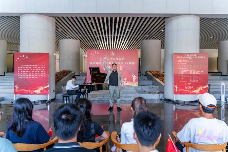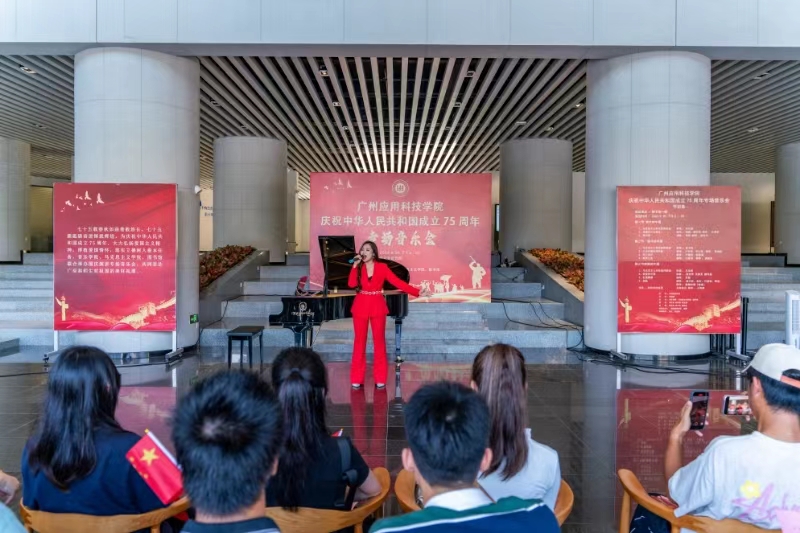 在金秋送爽、举国同庆的美好时节,广州应用科技学院洋溢着一股浓厚的节日氛围。为庆祝中华人民共和国成立75周年,9月30日下午,学校举办国庆专场音乐会,以音乐为媒介,向祖国献上最诚挚的祝福。