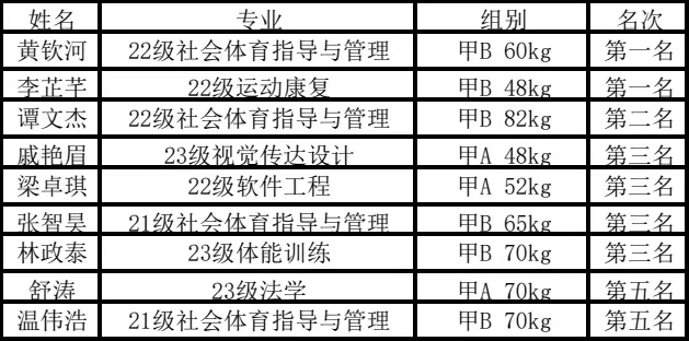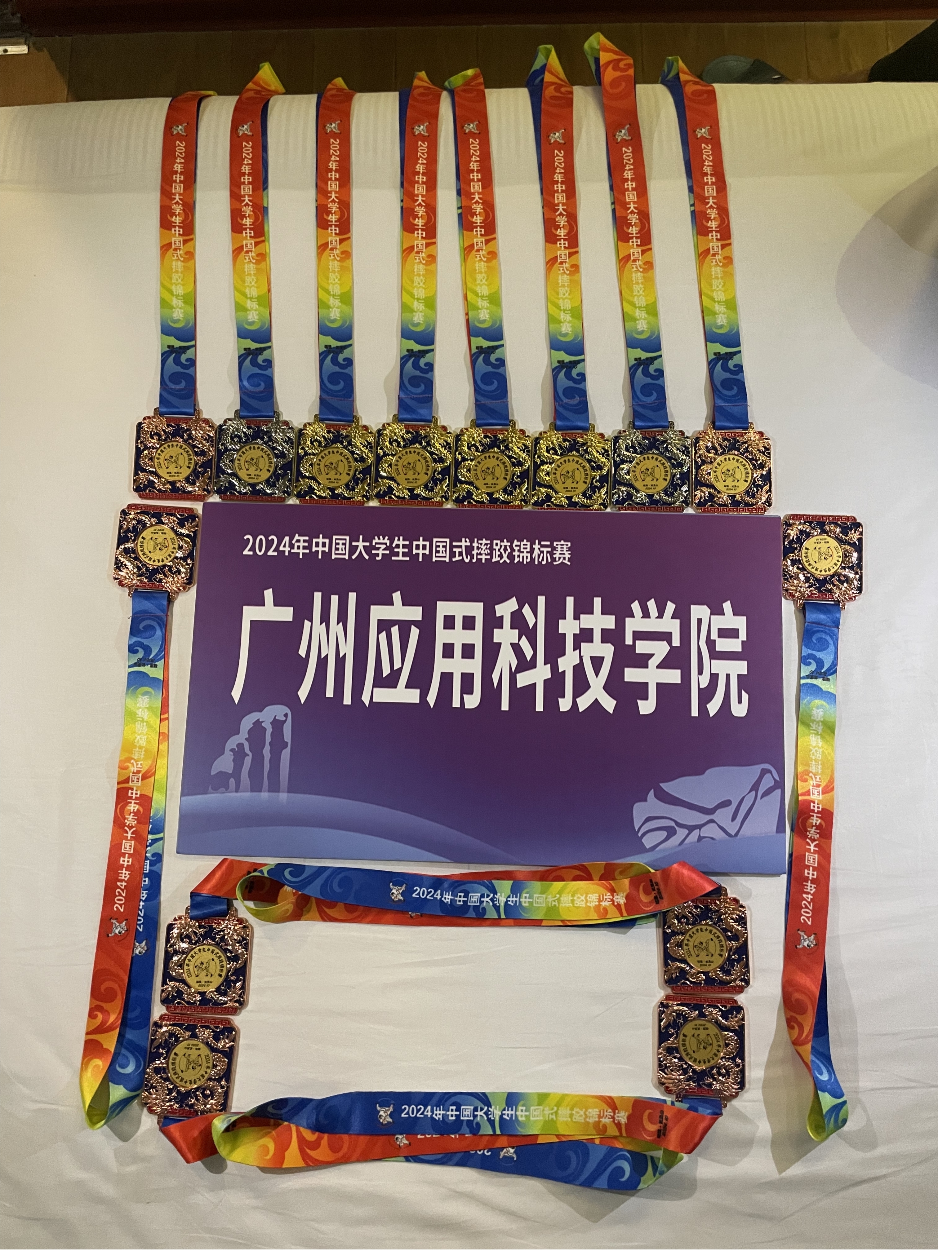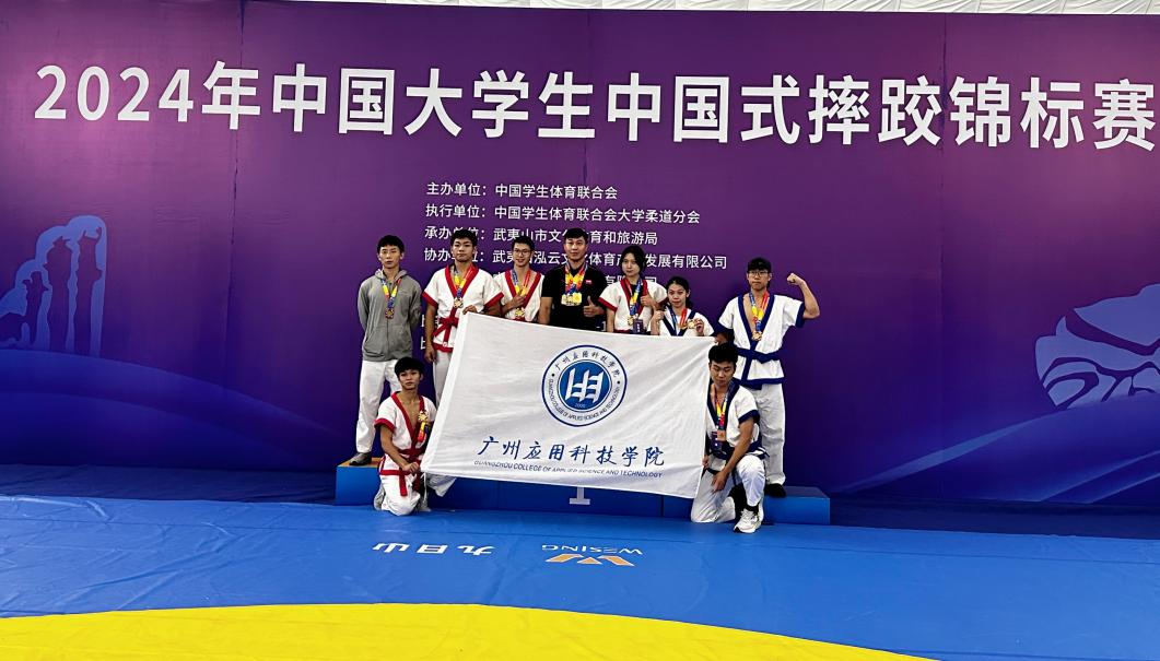 2024年10月11日至13日,由中国学校体育联合会主办,武夷山市文化体育和旅游局承办的“2024年中国大学生中国式摔跤锦标赛”在武夷山鸿云体育训练基地开幕。本次比赛共有51所高校代表队的400多名运动员和教练员参加。我校体育与科技学院副院长韩会军带领广应科代表队参赛,经过精彩角逐,荣获2金、1银、4铜及2个第五名,共计9枚奖牌,展现了广应科运动健儿的卓越风采。