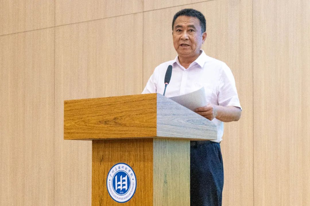 党委书记陈光团在表彰会上讲话,他首先代表学校党政领导,向所有参与此次活动并取得优异成绩的师生表示热烈的祝贺和诚挚的感谢。陈光团书记指出,在今年的暑期“三下乡”活动中,广应科师生围绕“镇村出题、高校揭榜、滚动推进、长期结对”的校地合作模式,聚焦基层高质量发展难题,“争当‘突击队’、勇做‘生力军’,开展了一系列特色鲜明,成效显著的社会实践活动。陈光团书记表示,学校将完整、准确、全面贯彻党的二十届三中全会精神和省委关于“百千万工程”的重要部署,以广东青年大学生“百千万工程”突击队行动为抓手,以大学生社会实践工作为主要途径,深化为党育人、为国育才的政治功能,发挥实践育人在学校“大思政”工作体系和“三全育人”工作格局中的重要作用,聚焦主责主业、坚持守正创新,开展经常性、有组织的社会实践活动,为全面推进乡村振兴、推动县域高质量发展注入新动能,为推动城乡区域融合发展向更高水平和更高质量迈进贡献广应科力量。