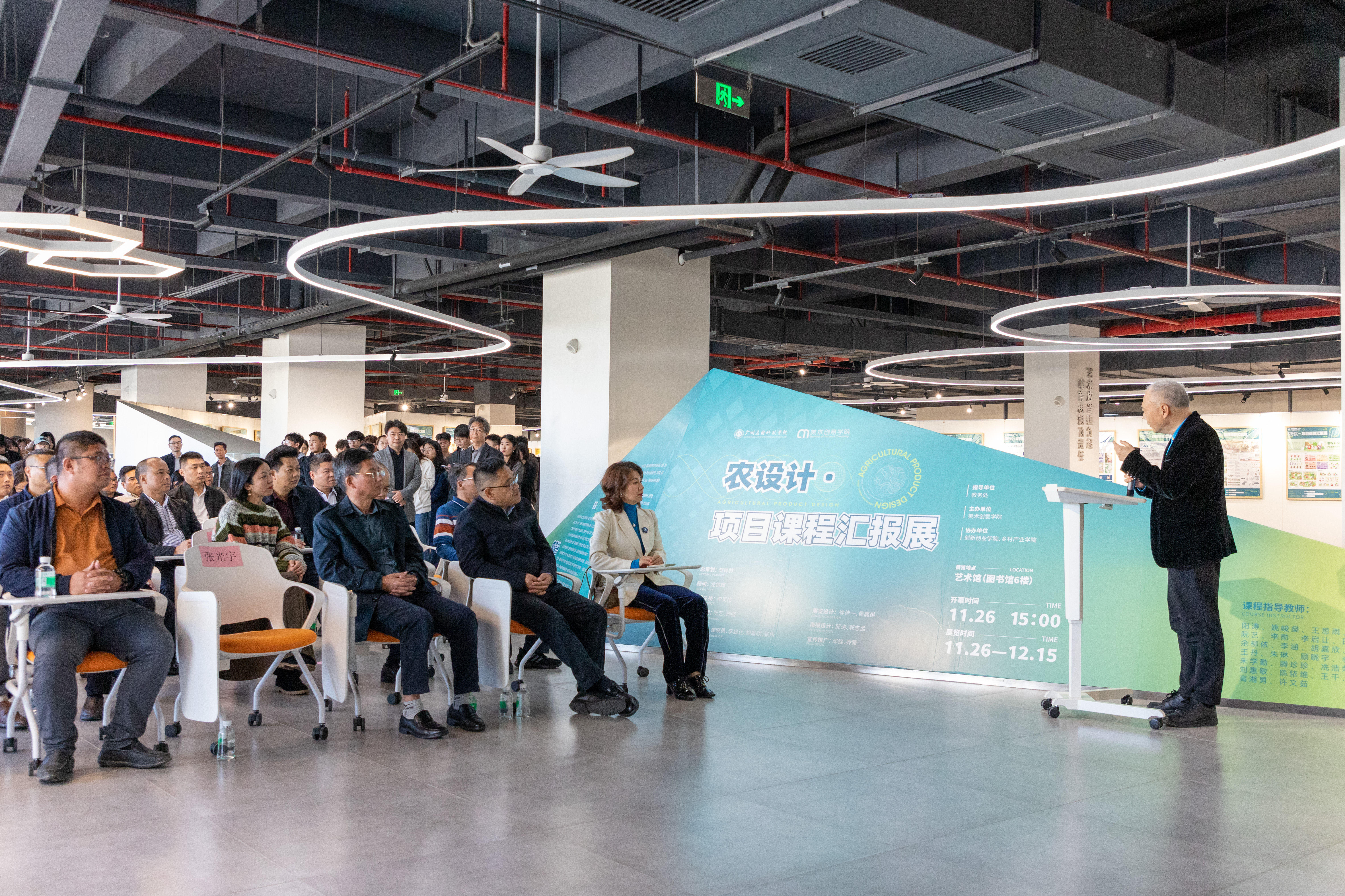 在开幕式上,广州应用科技学院执行校长张光宇讲话,他表示,学校将“农设计”理念融入到助力肇庆“百千万工程”的乡村振兴工作中,学生们的积极性和参与度高涨。通过课程学习,学生们不仅加深了对肇庆地区自然生态、人文历史的了解,还对中国优秀传统文化的认知与理解有了质的飞跃。这一举措不仅推动了美术创意学院设计课程的教学改革和设计水平的提升,还增强了学校的社会服务功能。未来,学校还将打通各专业、各学科的优势,在“农”字做文章,继续推出“农科技”“农规划”“农故事”等专题,形成具有广应科特色的助力“百千万工程”的“农系列”,继续为乡村建设、产业振兴提供有力的高校赋能支持。