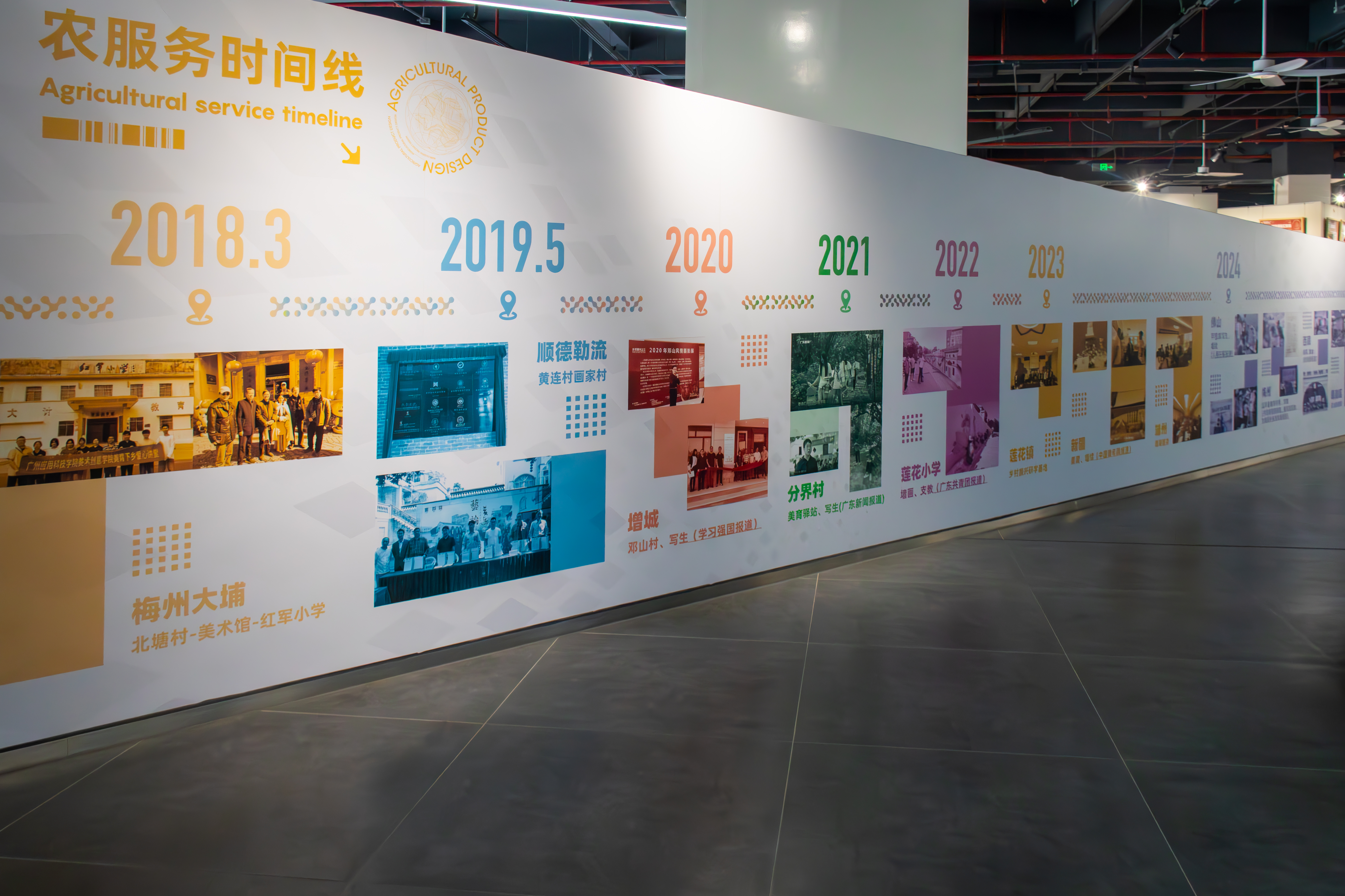 广州应用科技学院美术创意学院作为此次展览的策展单位,充分发挥了应用型院校服务地方、支持地方产业发展的政策优势,基于自身学科建设的发展需求,将“农设计”作为设计专业特色培育的抓手,利用丰富的设计教师资源,多次组织骨干教师深入周边乡村进行实地调研。他们用一年时间走访肇庆多个乡镇,深入了解农村的自然生态、文化特色和市场潜力,为设计专业的特色建设之路提供了宝贵的素材和灵感。