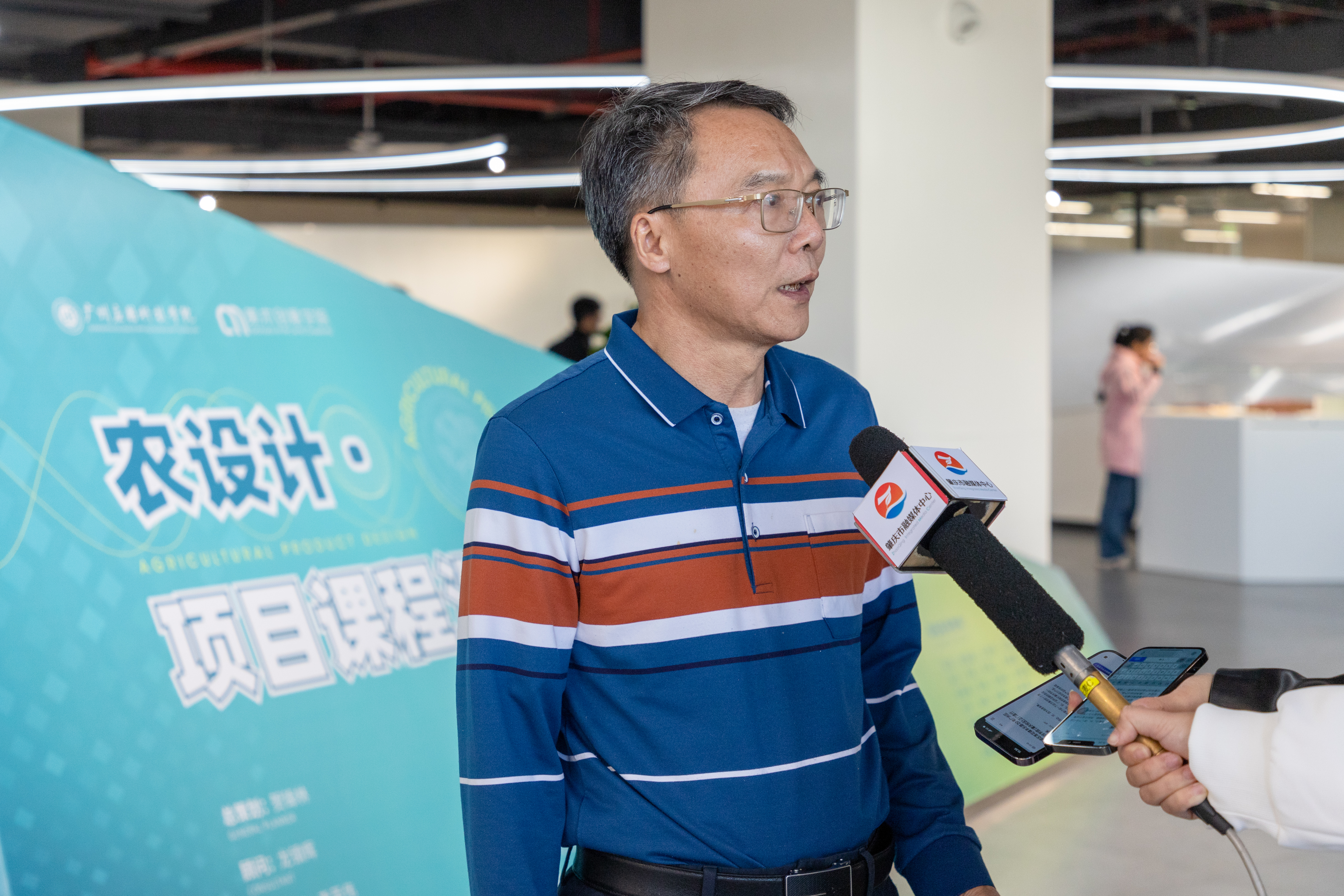 学校“百千万工程”项目总顾问龙镇辉介绍:“这期农设计展览最大亮点就是把肇庆市的资源、文化变成设计产品,学生们对农产品包装进行系列设计,变成卡通化、形象化,嵌入文化内涵,相信对肇庆农文旅融合发展起到非常大的启发作用。”