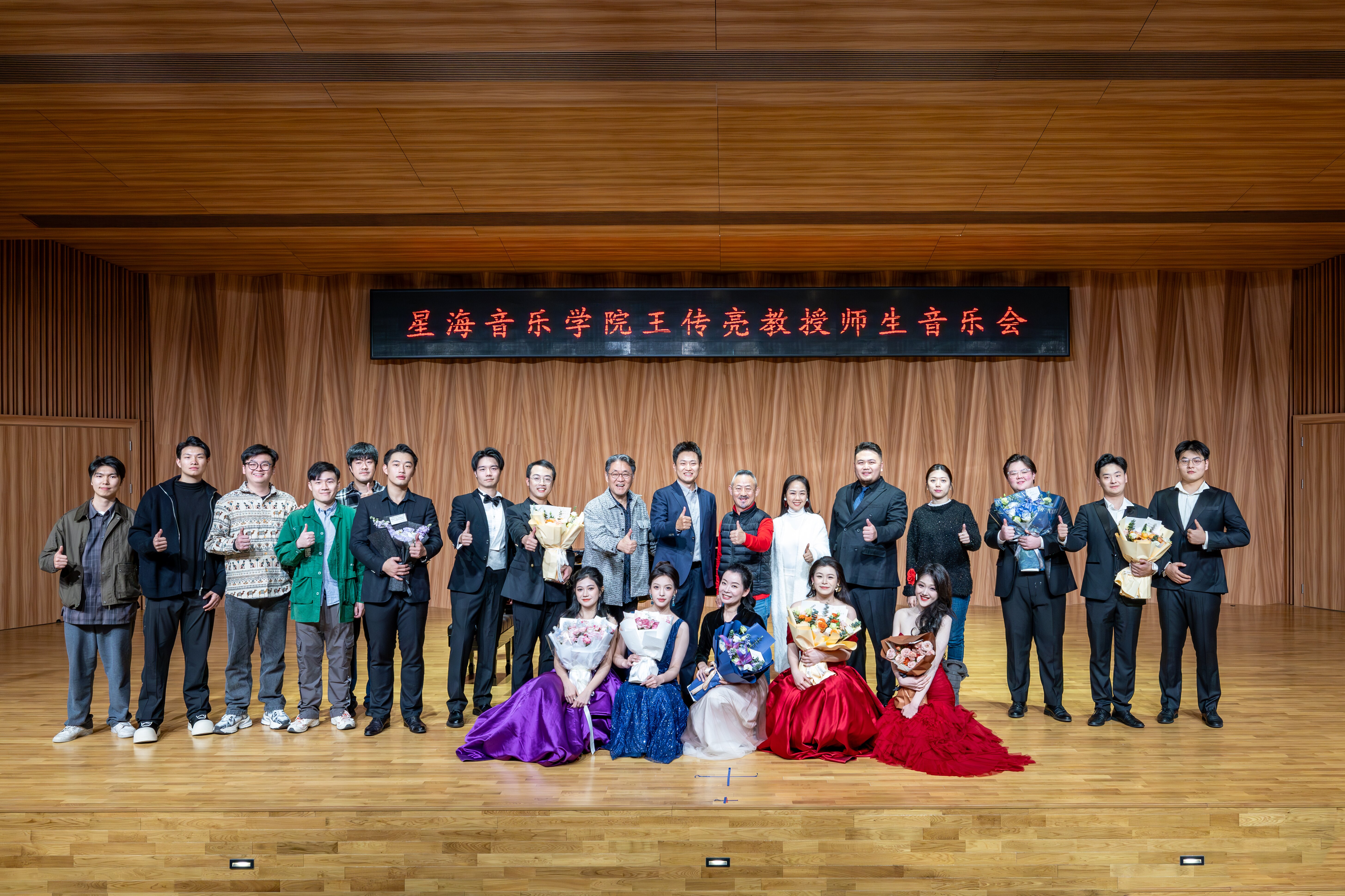 音乐会在热烈的掌声中拉开帷幕。王传亮教授作为本次音乐会的灵魂人物,不仅以其深厚的艺术功底和丰富的舞台经验为师生们树立了榜样,更在音乐会筹备过程中倾注了大量心血,从曲目选择到舞台呈现,每一个细节都力求完美。在他的精心指导下,两校师生以饱满的热情和精湛的技艺,展现了对音乐的热爱与追求。