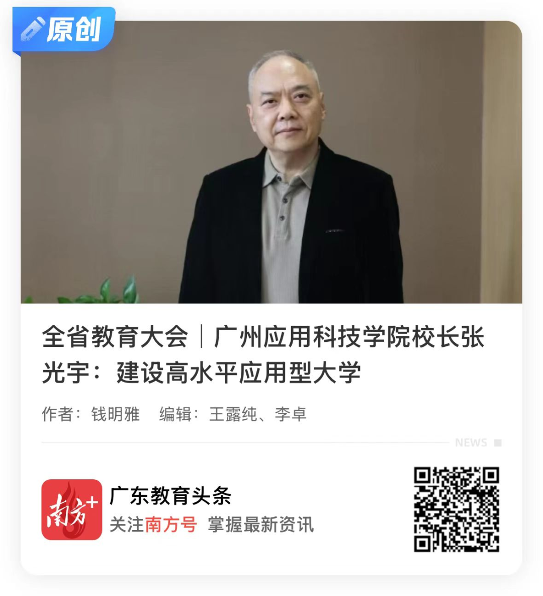 广州应用科技学院校长张光宇: 建设高水平应用型大学