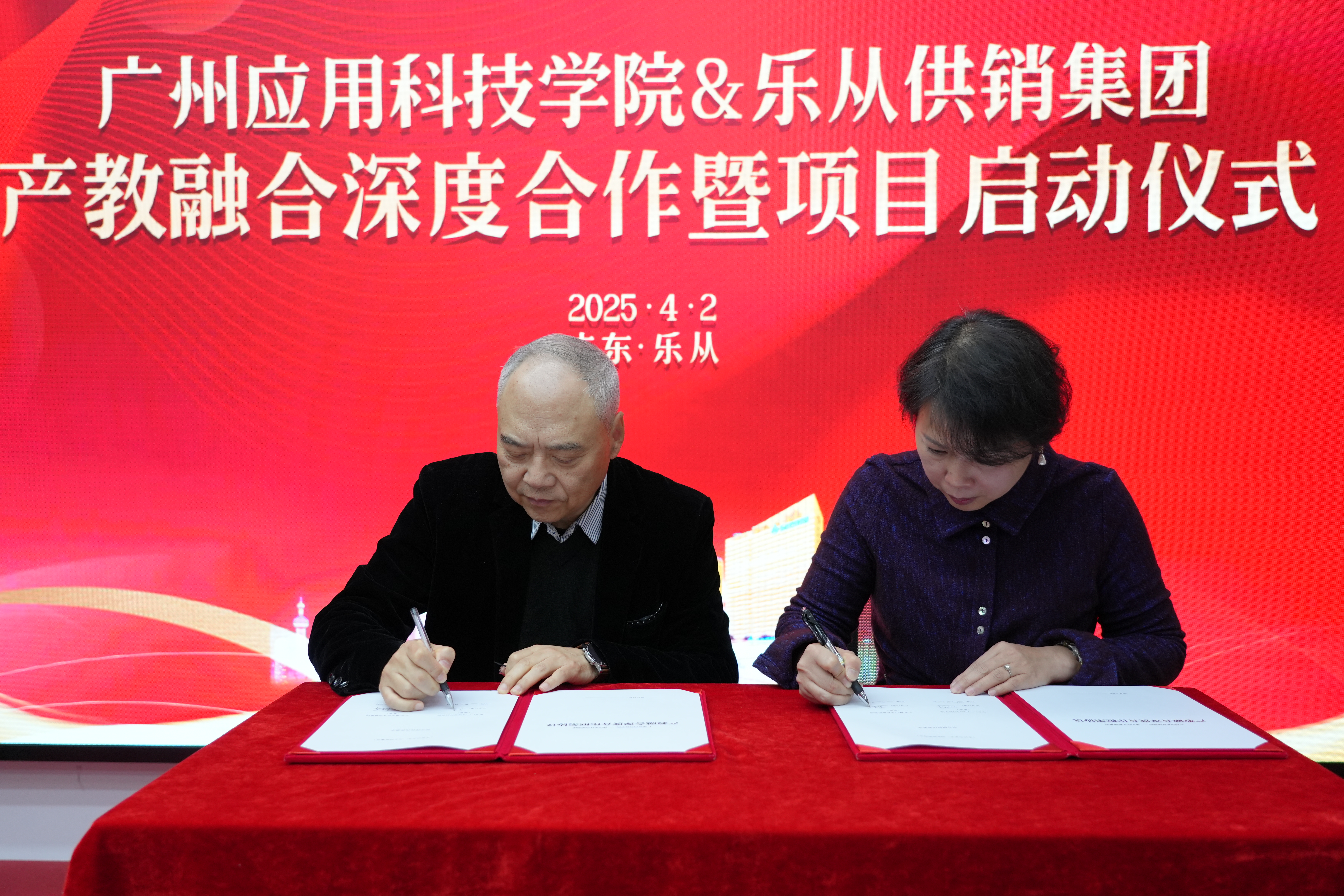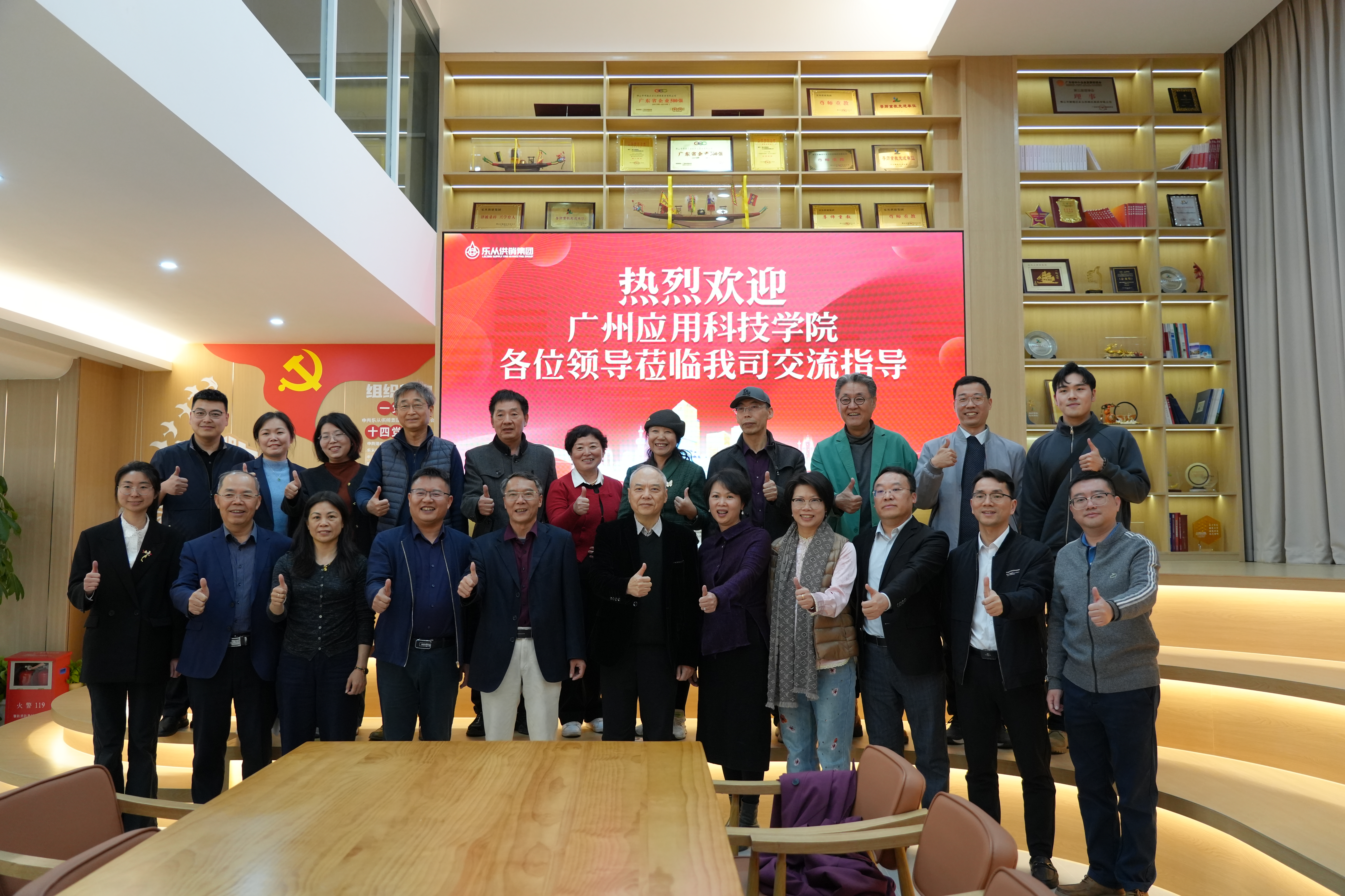 为进一步深化产教融合,推进协同育人、科研合作,4月2日下午,广州应用科技学院与佛山乐从供销集团产教融合深度合作会议,在顺德的乐从集团总部举行。校企双方领导讲话并进行战略合作协议签约,共同确定在人工智能开发运用、人才培养、成果转化等方面开展合作,并立足长远、优势互补、资源共享、互惠双赢,整合创新资源,深化产教融合,推进协同育人,在高质量发展的道路上携手并进、走深走实。