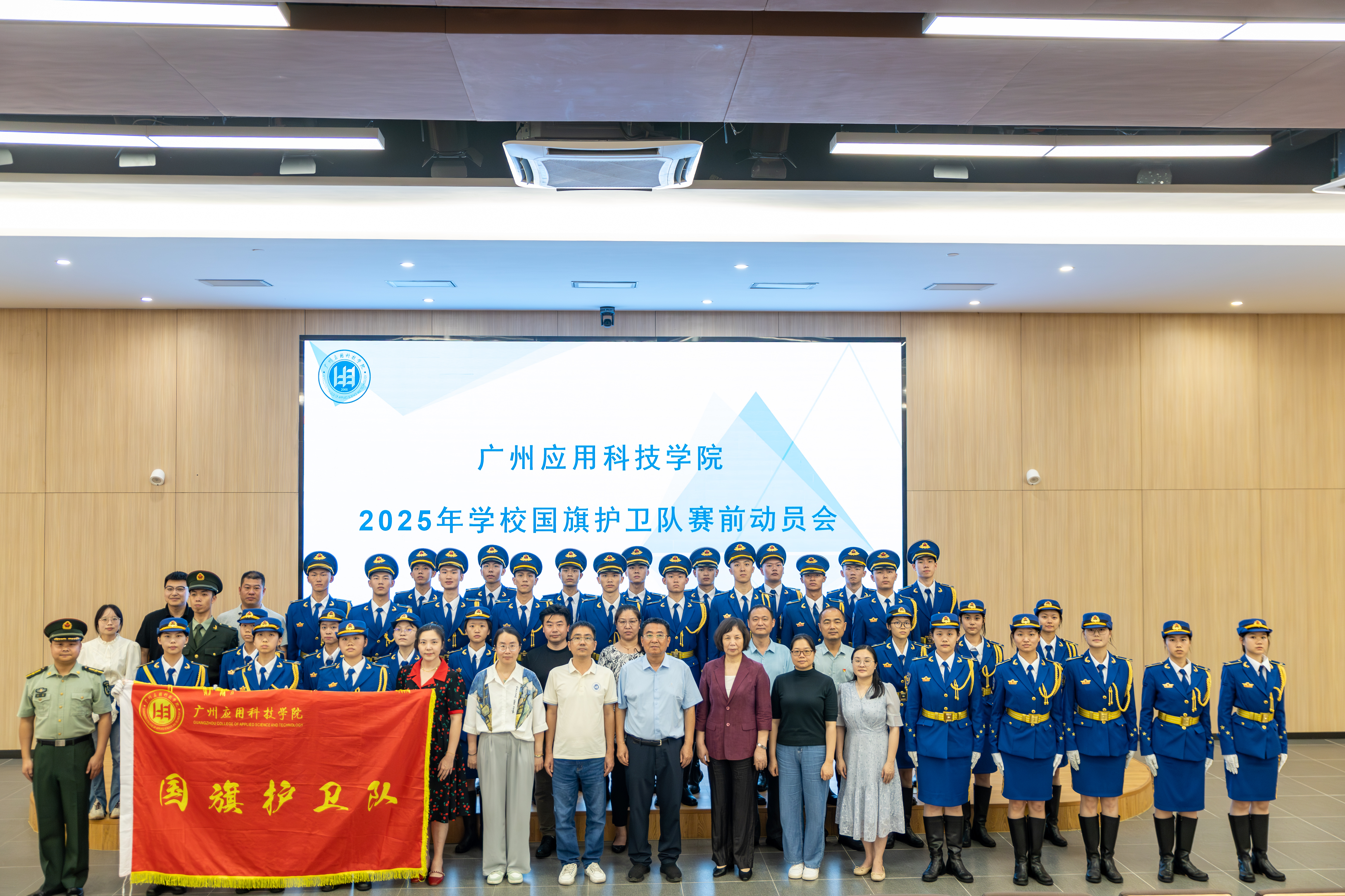 我校国旗护卫队是在学生工作部(武装部)指导下的校级学生组织,这支队伍作风优良、纪律严明,始终展现着青春担当的精神风貌。此次赛事,我校国旗护卫队将派出32名队员参加。经过严格训练,队员们将以整齐划一的步伐、标准规范的动作,在赛场上展现广应科青年守护国旗的坚定信念与团结协作精神,力争以优异成绩续写护旗荣光。2024年5月,我校首次组建成建制的国旗护卫队,参加第三届广东省学校国防教育成果交流展示活动,荣获全省本科组二等奖。