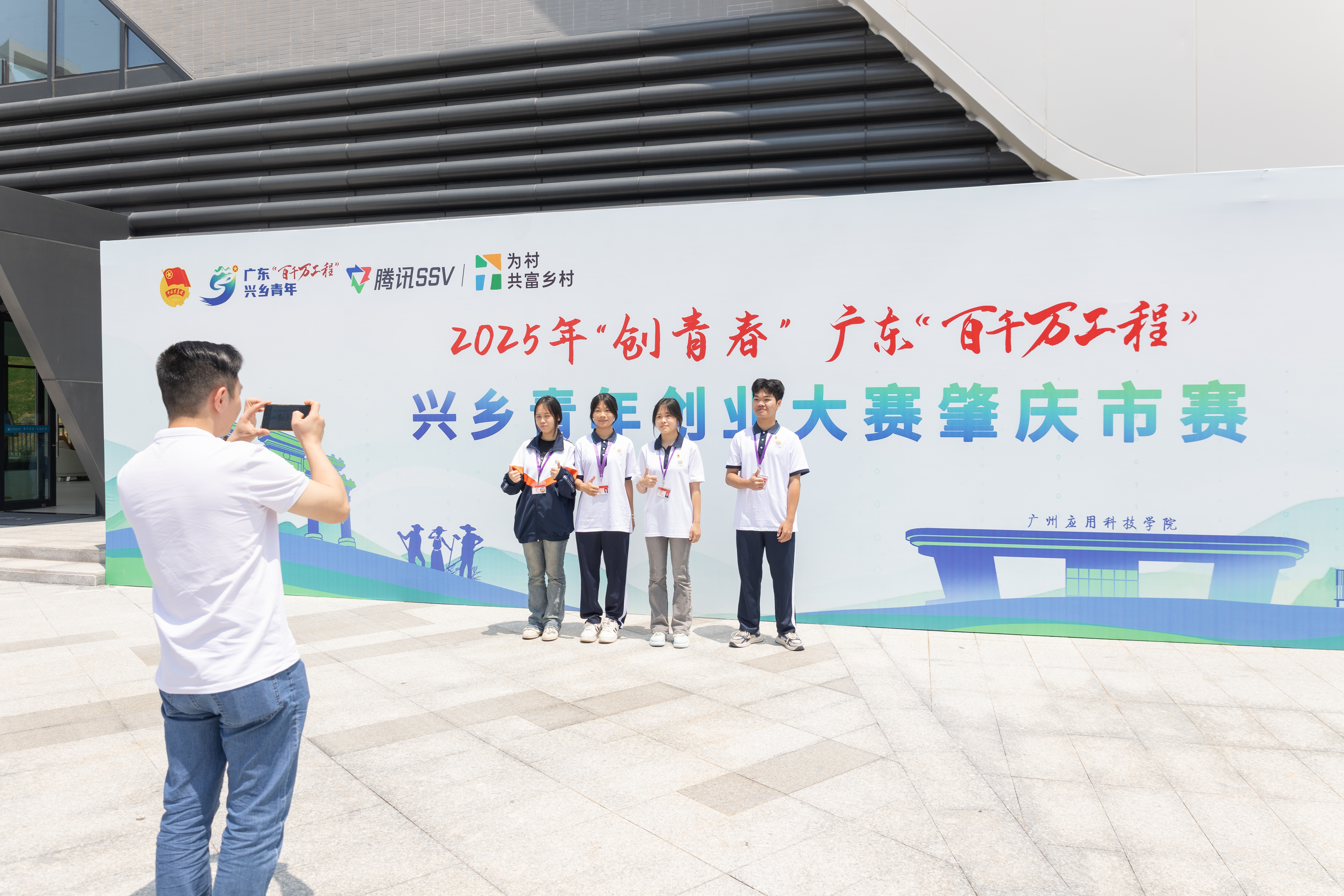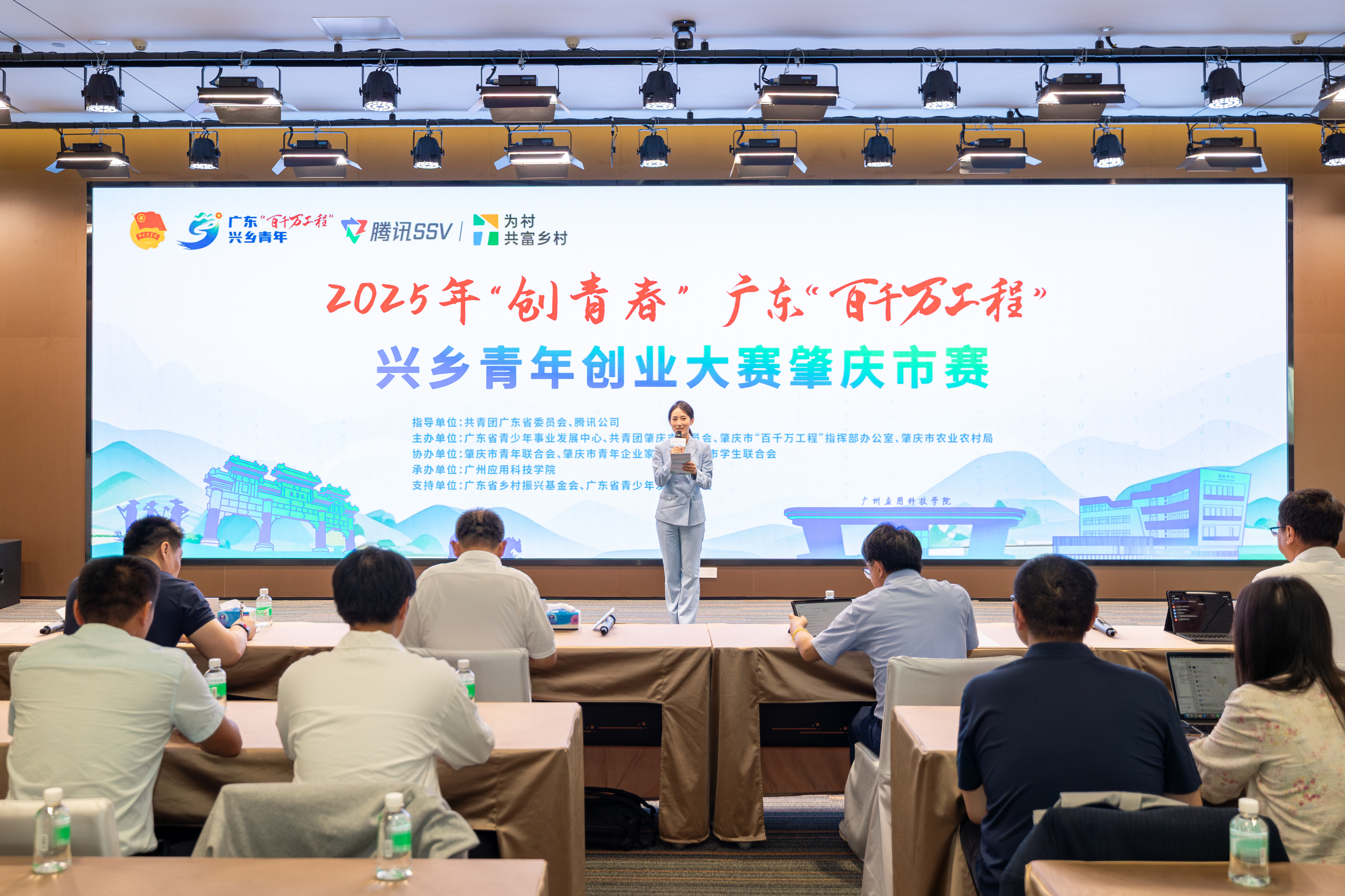 为贯彻落实省委“1310”具体部署,助力“百万英才汇南粤”,进一步夯实肇庆“百千万工程”青年兴乡培育计划成果,4月28日至29日,2025年“创青春”广东“百千万工程”兴乡青年创业大赛肇庆市赛决赛在广州应用科技学院国际会议中心举行。本次活动以共青团广东省委员会、腾讯公司为指导单位,广东省青少年事业发展中心、肇庆市“百千万工程”指挥部办公室、肇庆市农业农村局、共青团肇庆市委员会主办,广州应用科技学院承办,为兴乡青年提供赛训辅导、展示交流、资源对接、落地孵化、宣传推广、资金支持等服务,表彰表现卓越的兴乡青年创业项目,展示肇庆市广大青年扎根乡土、助力兴乡的新时代青年风采,为肇庆深入实施“百千万工程”注入青春动能。学校高度重视此次决赛的举办,由校团委牵头统筹活动的承办工作。