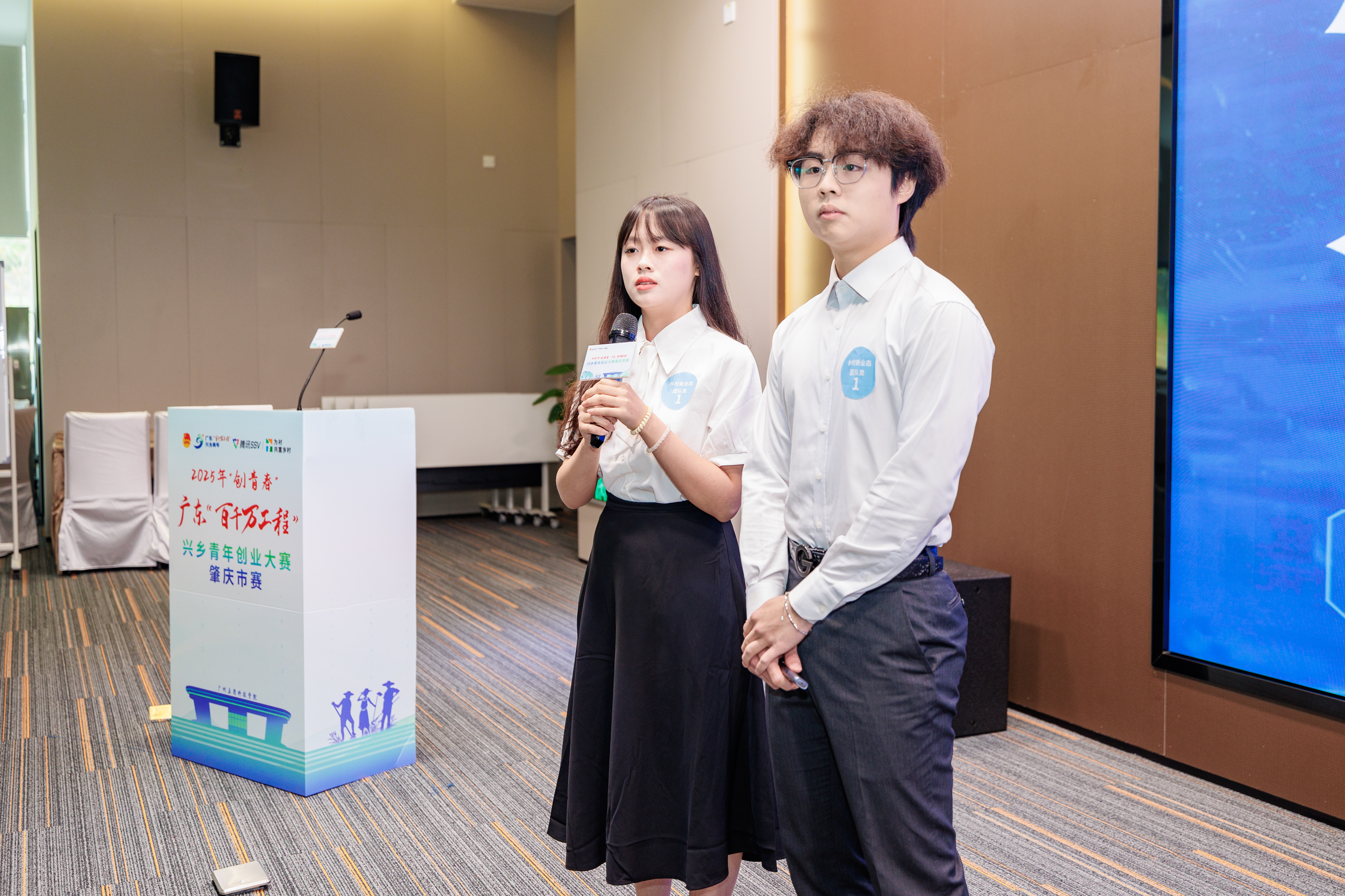 4月28日,“以青春之力,赴兴乡之约”——2025年“创青春”广东“百千万工程”兴乡青年创业大赛肇庆市赛决赛在我校国际会议中心举行。壹创投(北京)投资管理有限公司董事长丁浤伟,广州宜企邦科技有限公司总经理陈乔,广州松田职业学院创新创业学院副院长陈勇平,腾讯公司可持续社会价值事业部高级项目总监程泽南,广东省科技厅技术专家及创新创业大赛评委封智勇现场指导,各社企代表,各领域青年代表列席活动。参赛选手们以智慧新农业、青农优品、乡村新业态团队类、乡村新业态社会类项目顺序进行路演。